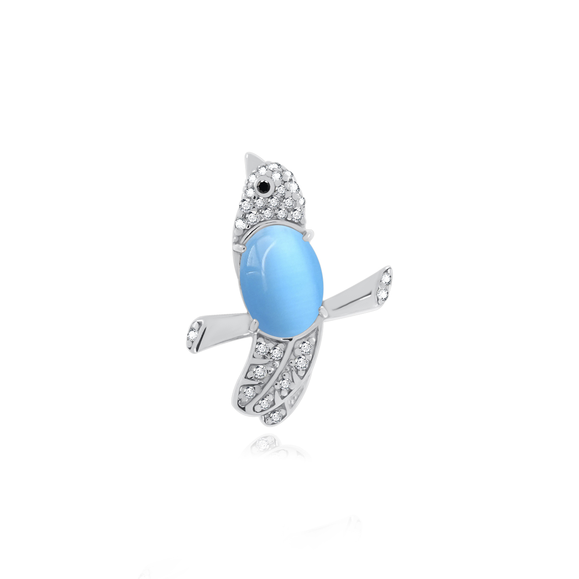 Брошь для женщин из серебра 925 пробы с ситаллом,кошачий глазом,,фианитами артикул 6340261699-70 от компании KRASNOE