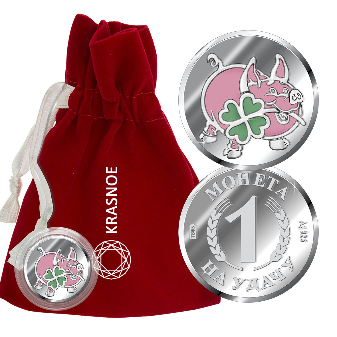 Серебряная монета с эмалью с изображением Кабана. Символ года.