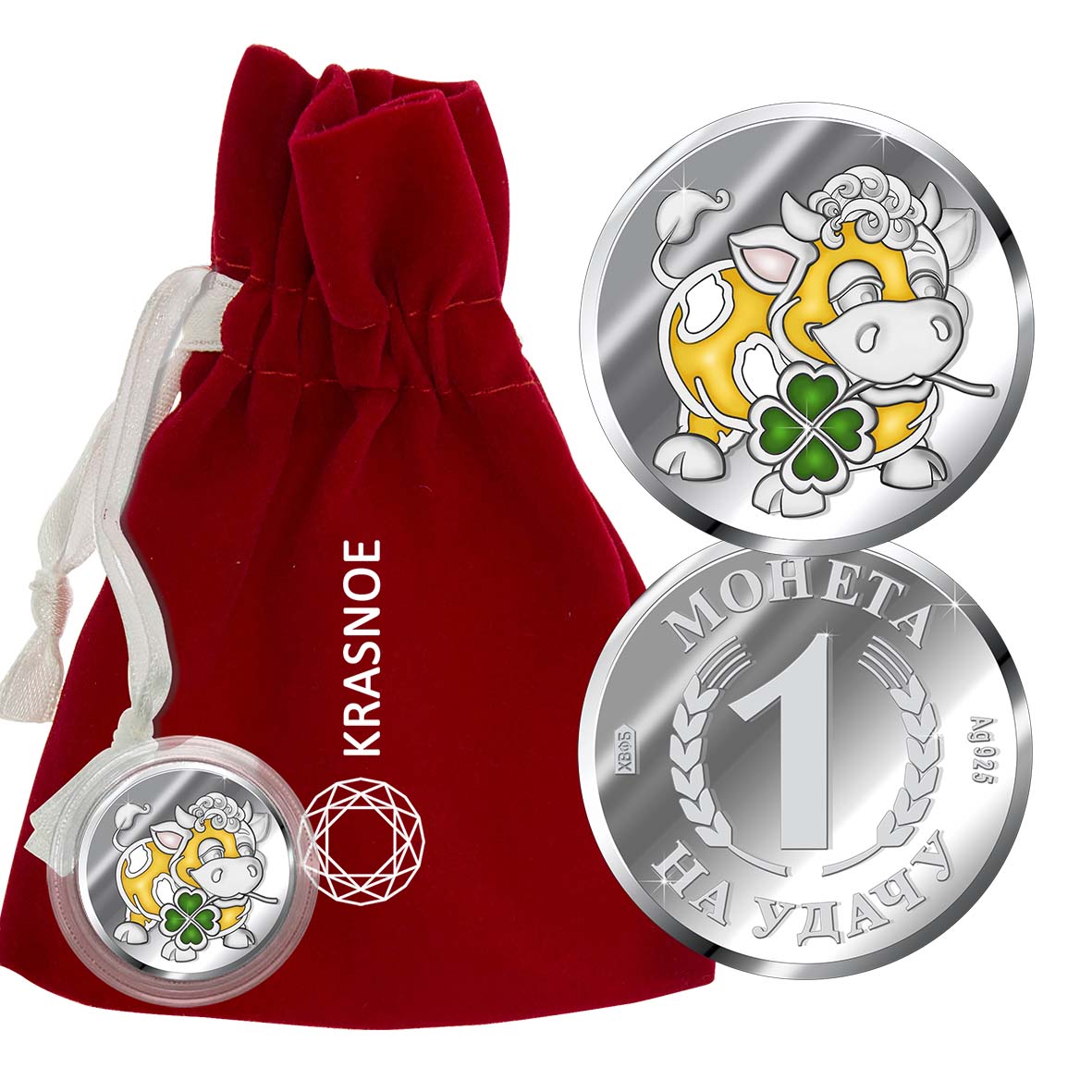 Серебряная монета с эмалью с изображением Быка. Символ года. Бык был покровителем 1901, 1913, 1925, 1937, 1949, 1961, 1973, 1985, 1997, 2009 и 2021 года. В следующий раз он станет символом 2033 и 2045 годов.