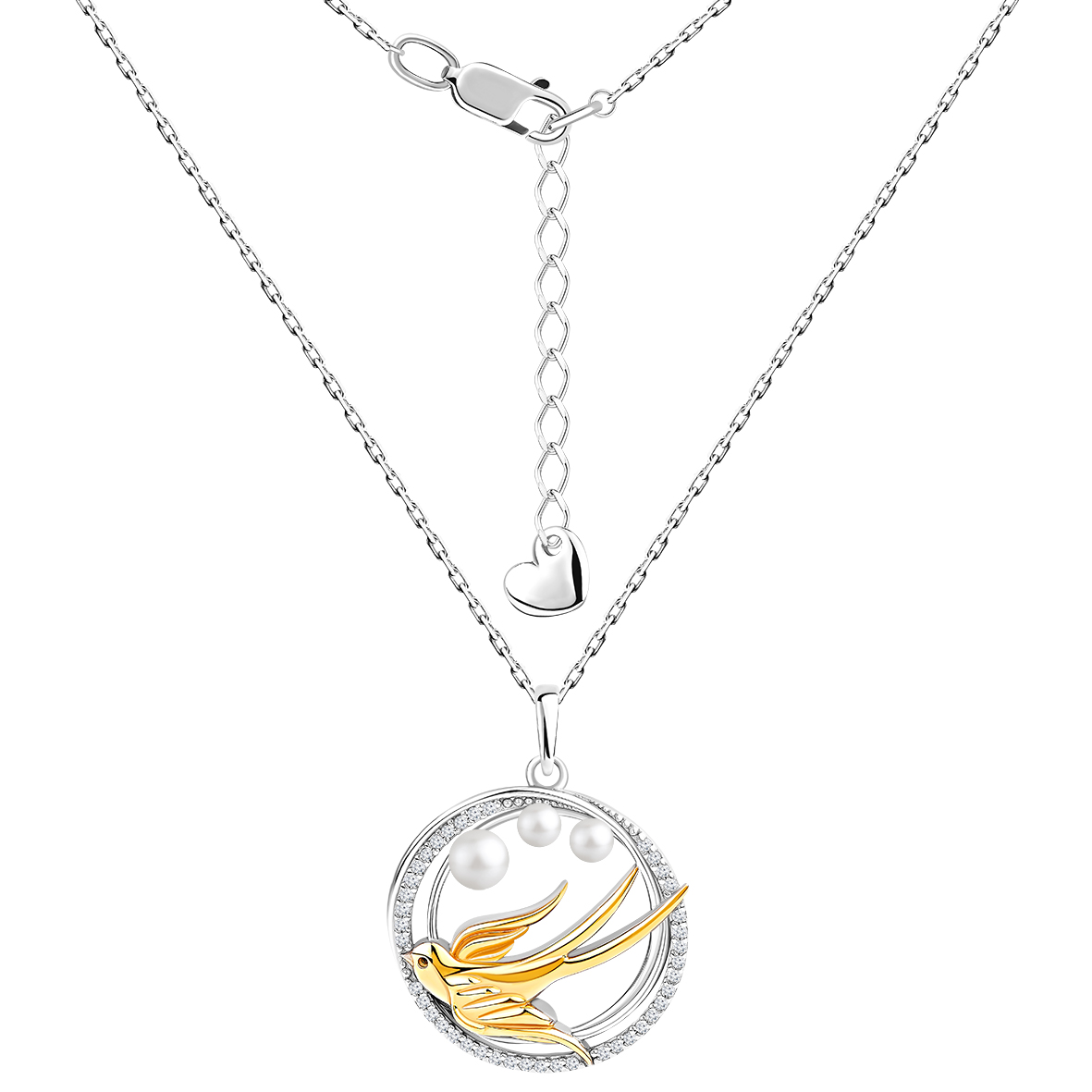 Колье для женщин из серебра 925 пробы с жемчугом,фианитами из коллекции Ласточка артикул 8350834600л-16-45 от компании KRASNOE