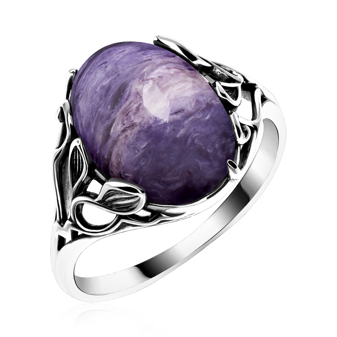 Кольцо для женщин из серебра 925 пробы с чароитом из коллекции Flowers артикул 1310465167 от компании KRASNOE