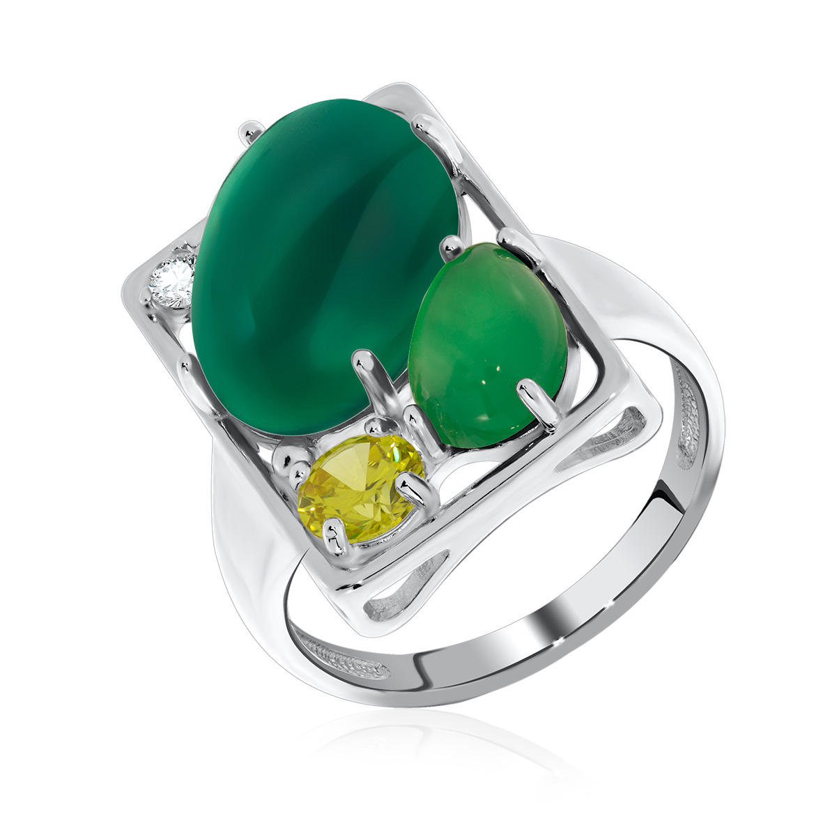 Кольцо для женщин из серебра 925 пробы с агатом,хризопразом,фианитами из коллекции Сладкая история артикул 1340391176-60 от компании KRASNOE