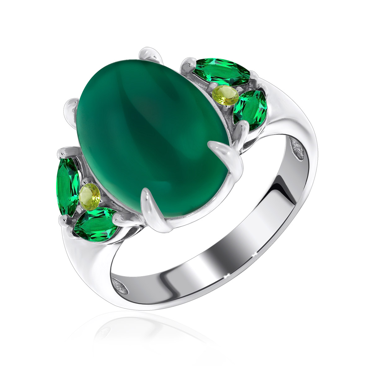 Кольцо для женщин из серебра 925 пробы с агатом,кварцами,наноизумруд (не использовать)ами из коллекции Уральские самоцветы артикул 1340390886-60 от компании KRASNOE