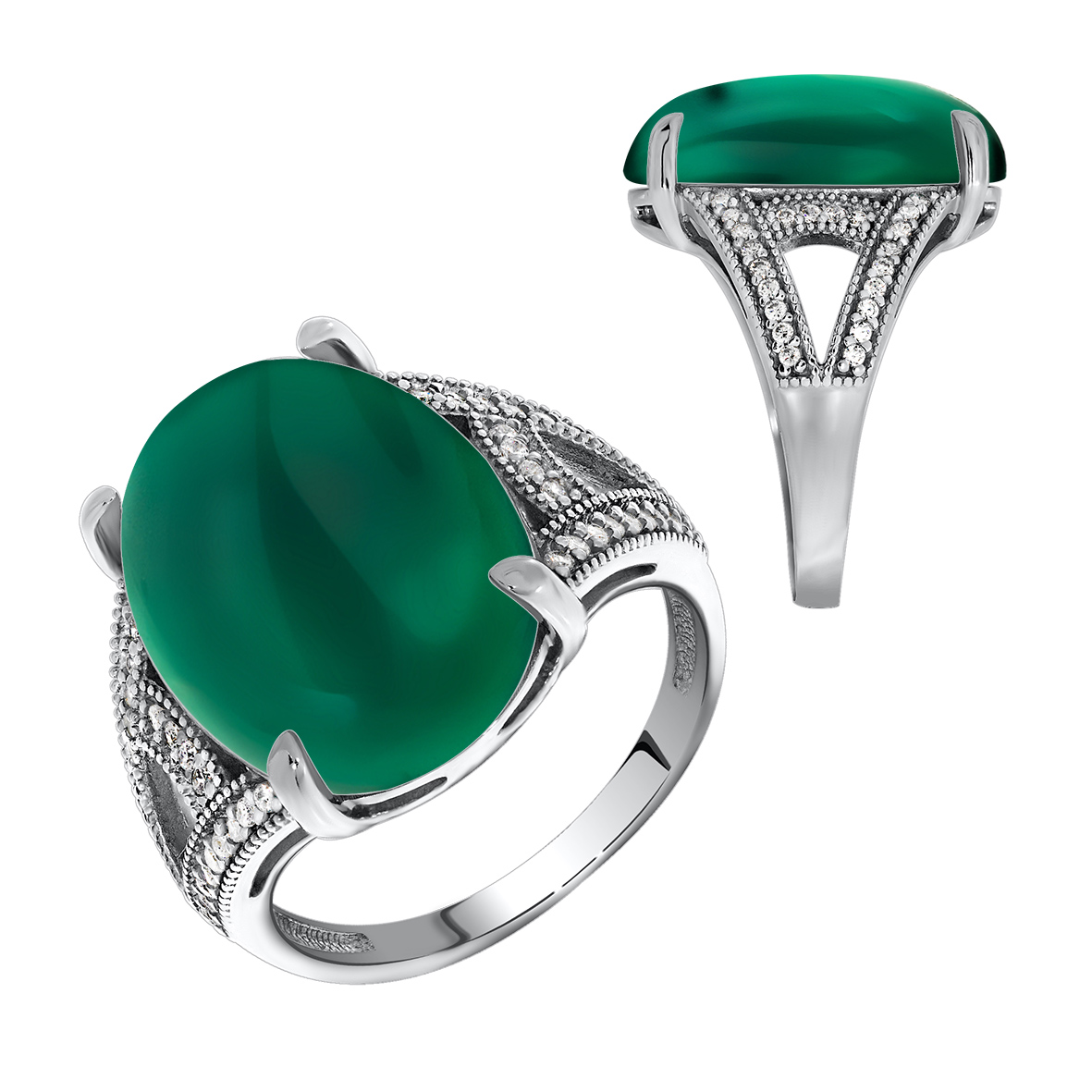 Кольцо для женщин из серебра 925 пробы с агатом,фианитами из коллекции Уральские самоцветы артикул 1340393537л-60 от компании KRASNOE