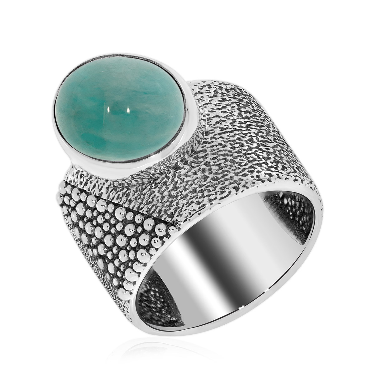 Данная модель кольца с натуральным амазонитом эффектно смотрится на руке и притягивает внимание окружающих. Кольцо можно не снимать на протяжении всего дня. Непритязательная классика будет гармонировать со всеми фасонами вашей одежды. Серебряные кольца удобно креативно сочетать друг с другом и с фаланговыми кольцами.В коллекцию ювелирного бренда KRASNOE входят колье-чокеры и галстуки, дорожки, пусеты, джекеты, серьги-трансформеры, а также яркая детская коллекция с эмалью. Размер вставки амазонит натуральный 10*12.