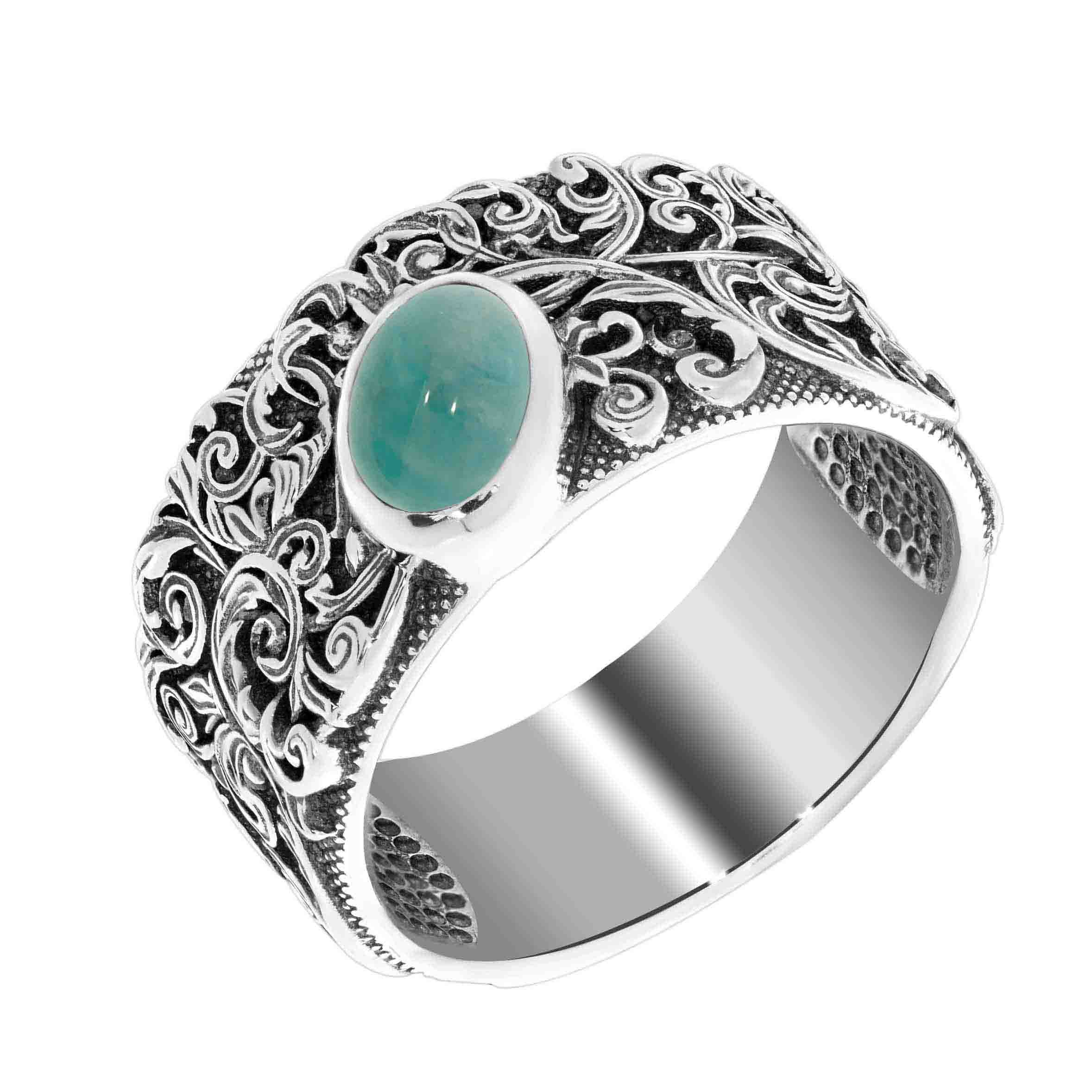 Кольцо для женщин из серебра 925 пробы с амазонитом из коллекции Boyarynia артикул 1310371369 от компании KRASNOE