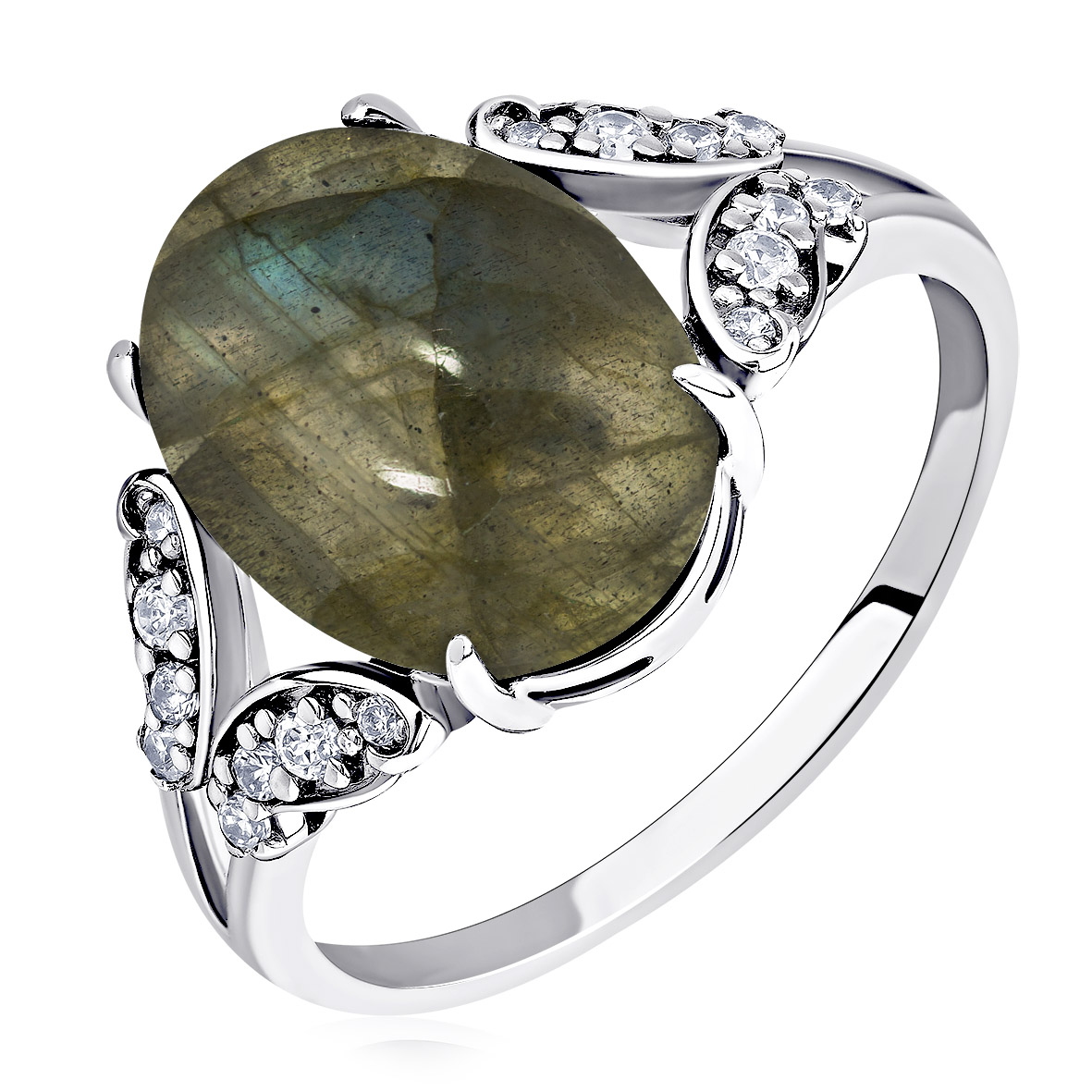 Кольцо для женщин из серебра 925 пробы с лабрадоритом,фианитами из коллекции Уральские самоцветы артикул 1340Л05099л от компании KRASNOE