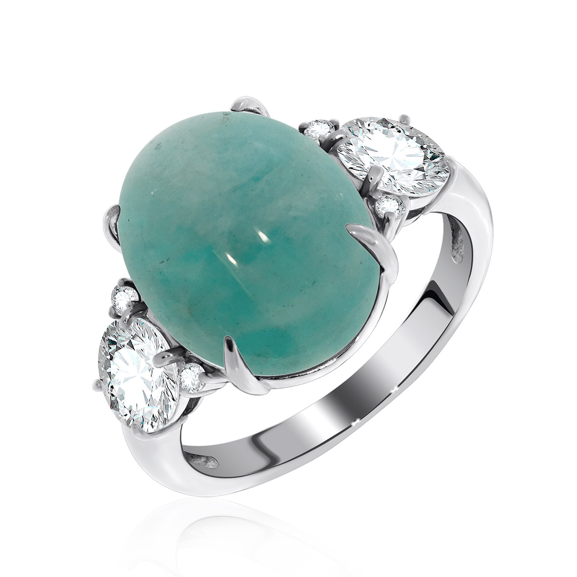 Кольцо для женщин из серебра 925 пробы с амазонитом,фианитами из коллекции Уральские самоцветы артикул 1340370936 от компании KRASNOE