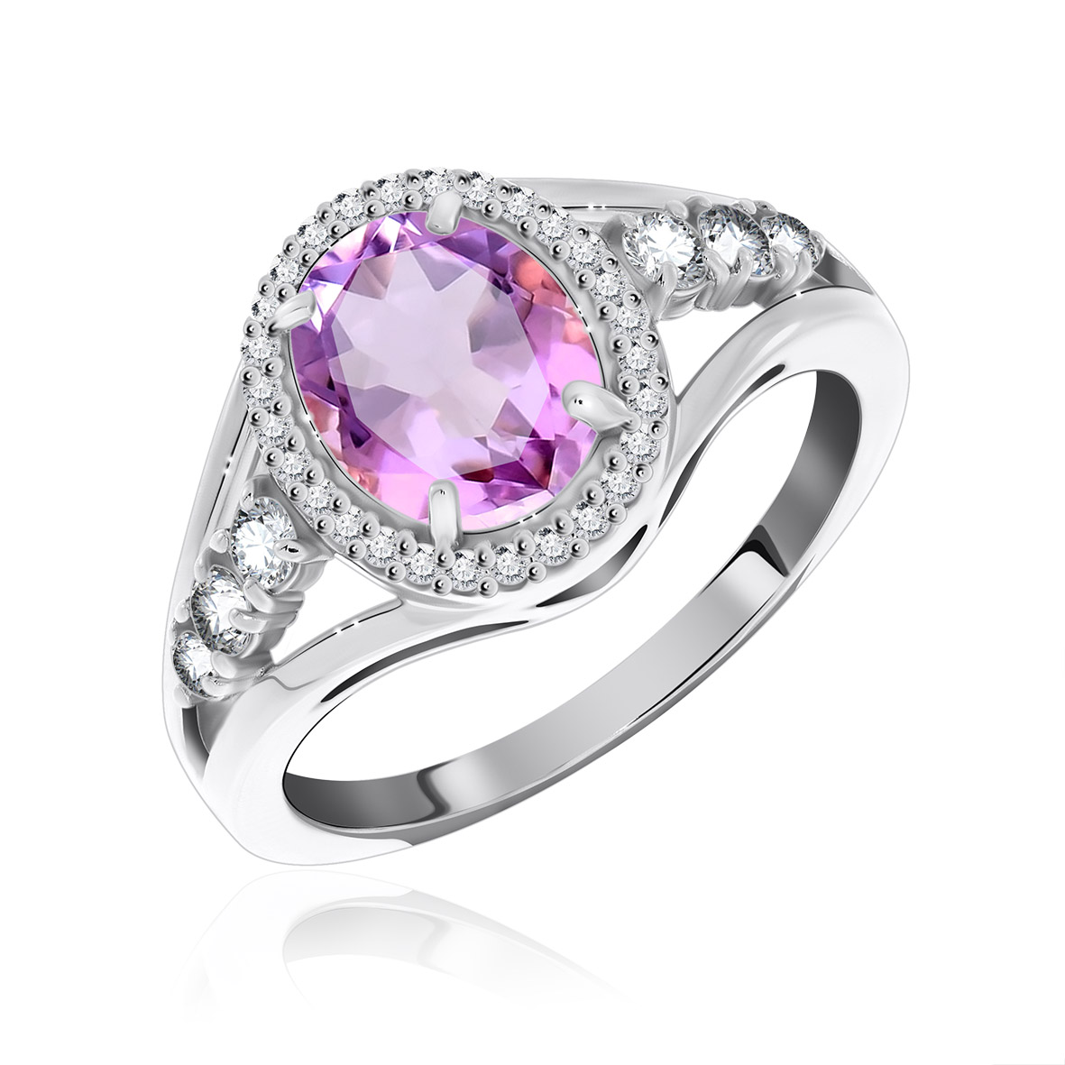 Кольцо для женщин из серебра 925 пробы с аметистом,фианитами из коллекции Ирида артикул 1340790182л от компании KRASNOE