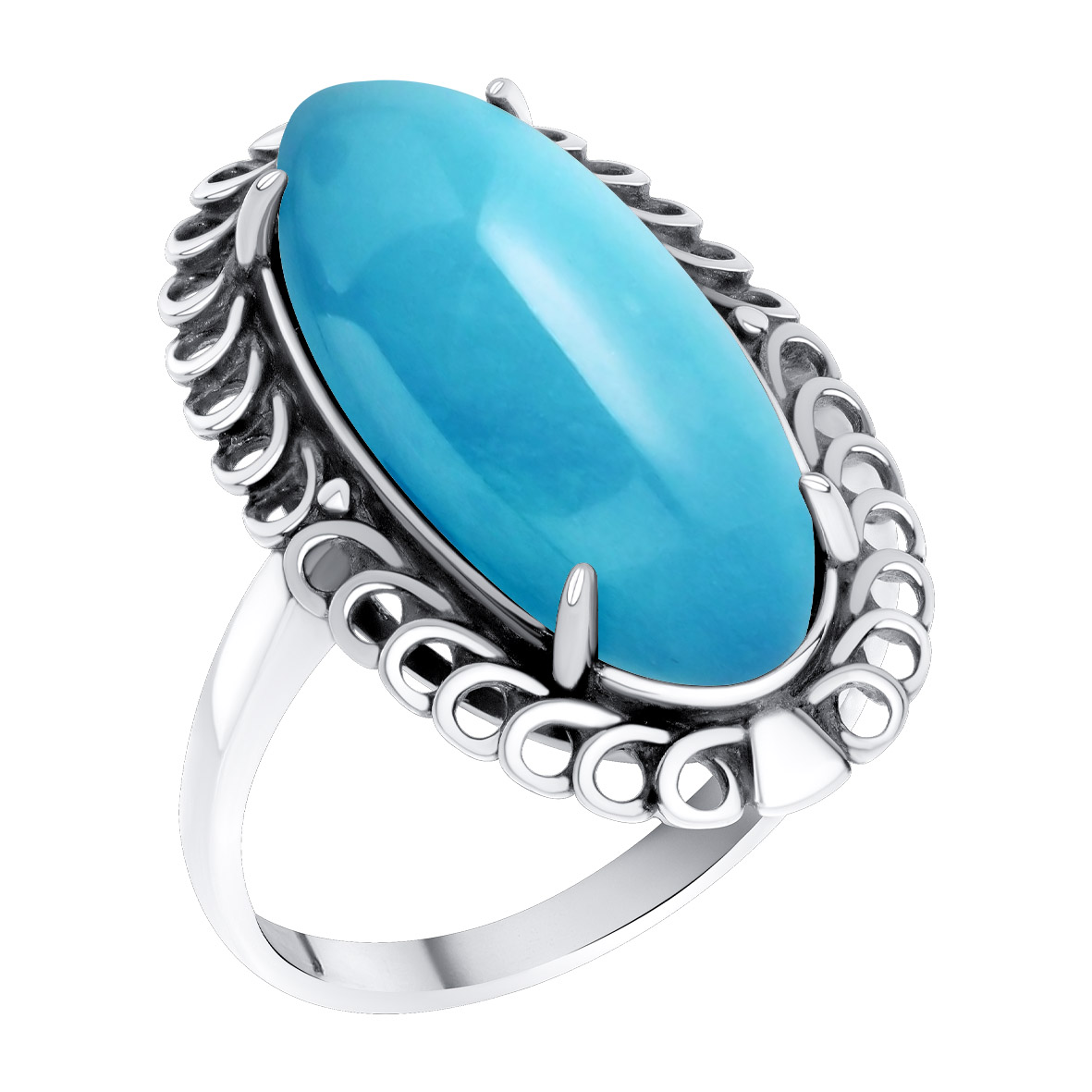Кольцо для женщин из серебра 925 пробы с бирюзой из коллекции Уральские самоцветы артикул 1310315781 от компании KRASNOE