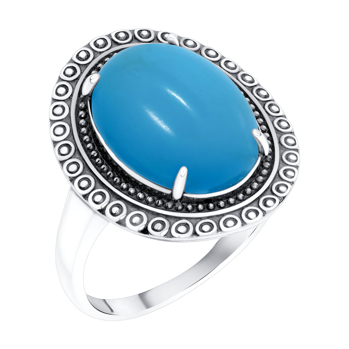 Кольцо для женщин из серебра 925 пробы с бирюзой из коллекции Династия артикул 1310Б25773 от компании KRASNOE