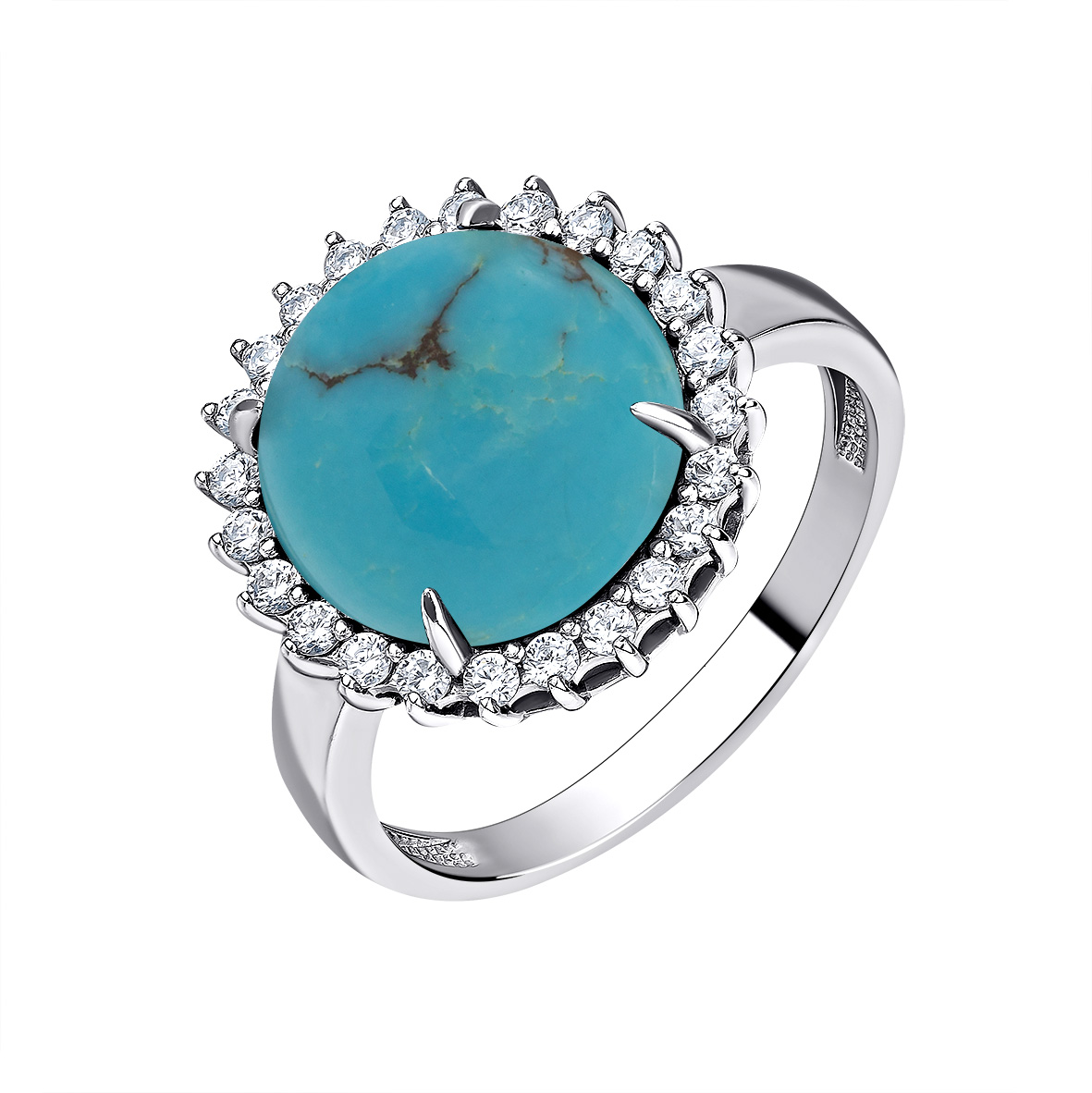 Кольцо для женщин из серебра 925 пробы с бирюзой,фианитами из коллекции Уральские самоцветы артикул 1340311977 от компании KRASNOE