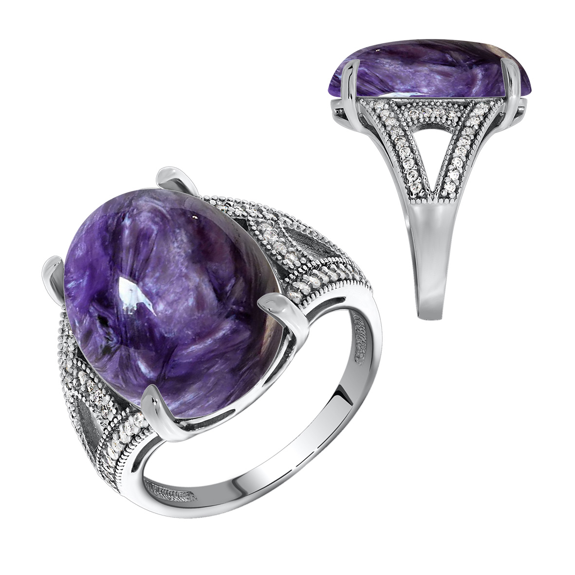 Кольцо для женщин из серебра 925 пробы с чароитом,фианитами из коллекции Уральские самоцветы артикул 1340463537л от компании KRASNOE