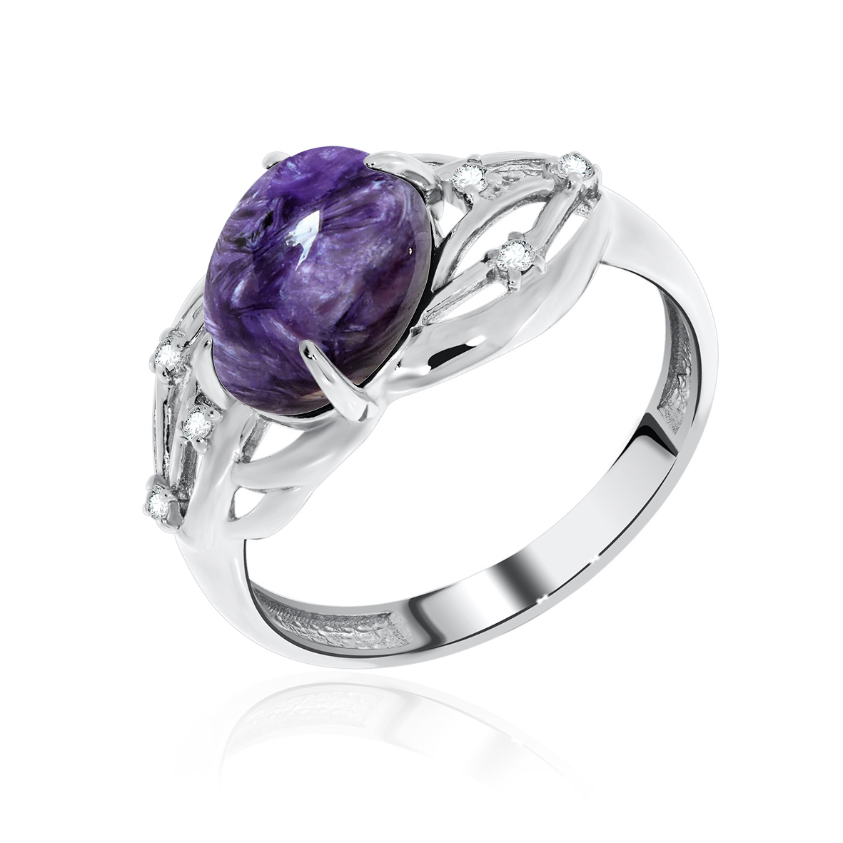 Кольцо для женщин из серебра 925 пробы с чароитом,фианитами из коллекции Fancy артикул 1340460985 от компании KRASNOE
