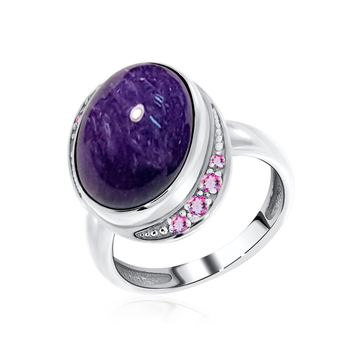 Кольцо для женщин из серебра 925 пробы с чароитом,фианитами из коллекции Династия артикул 1340460992-92 от компании KRASNOE