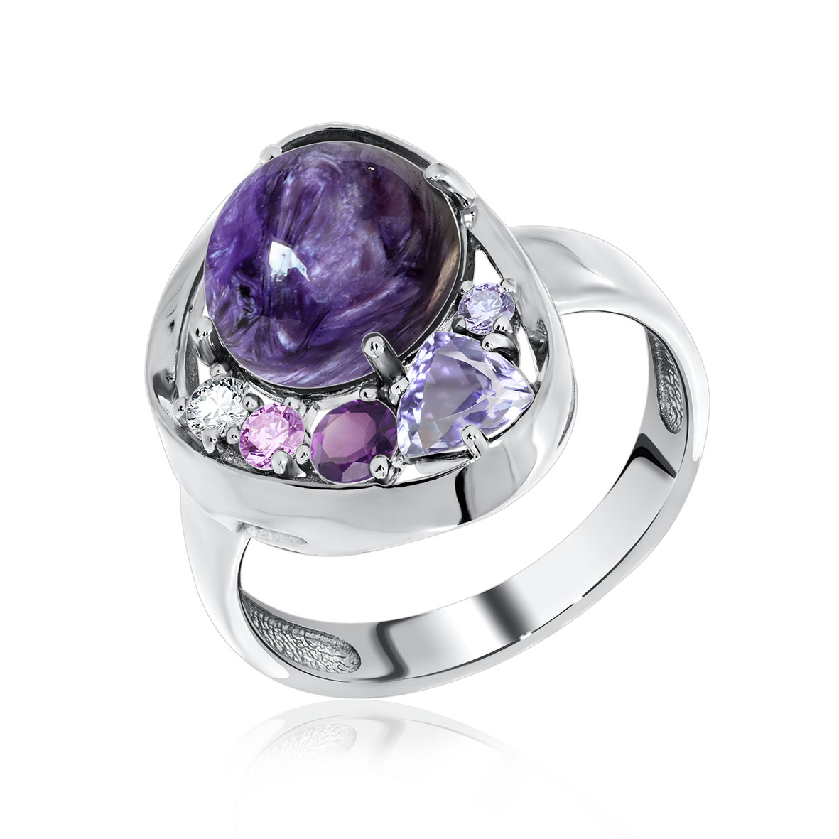 Кольцо для женщин из серебра 925 пробы с чароитом,фианитами из коллекции Сладкая история артикул 1340461170 от компании KRASNOE