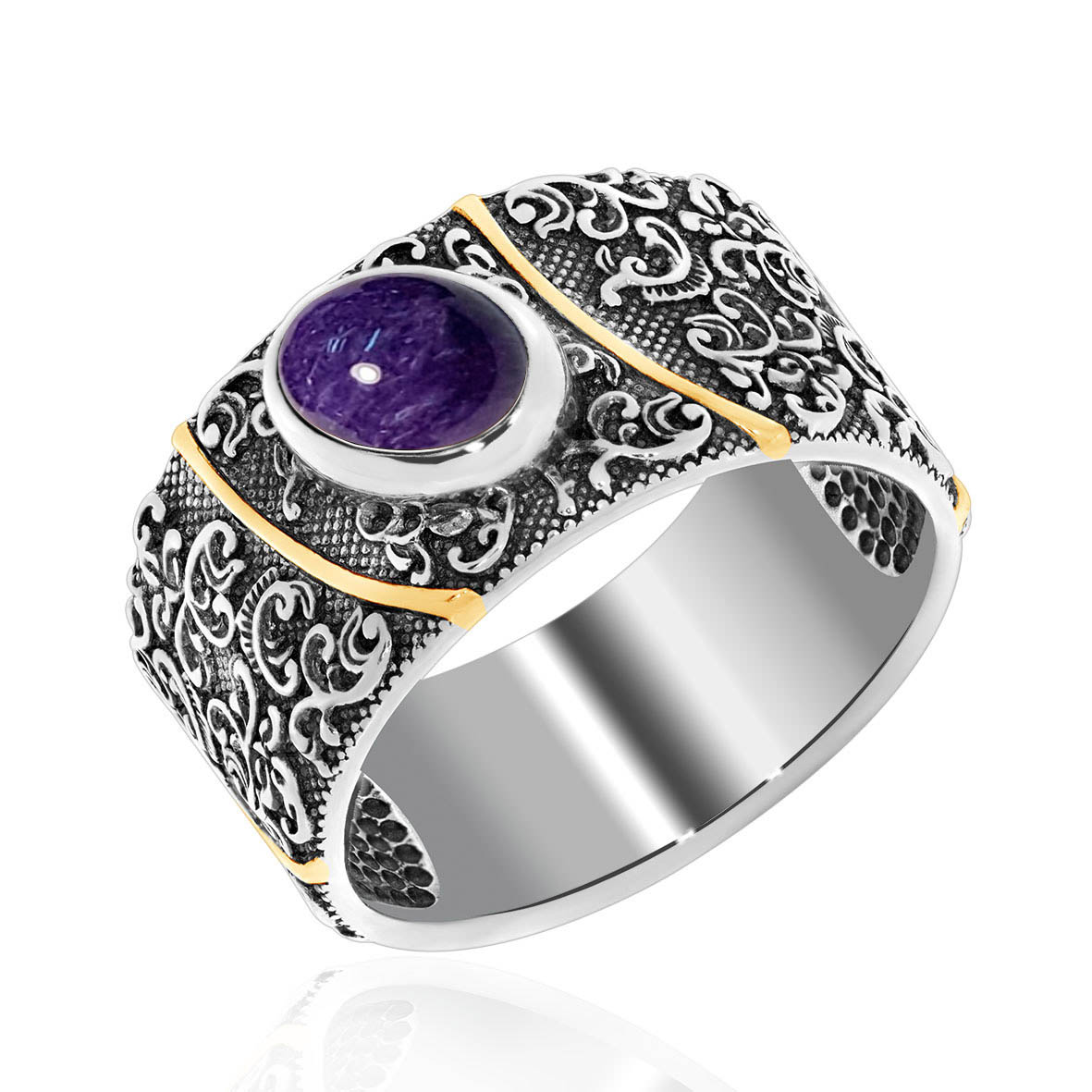 Кольцо для женщин из серебра 925 пробы с чароитом из коллекции Boyarynia артикул 1317461367 от компании KRASNOE