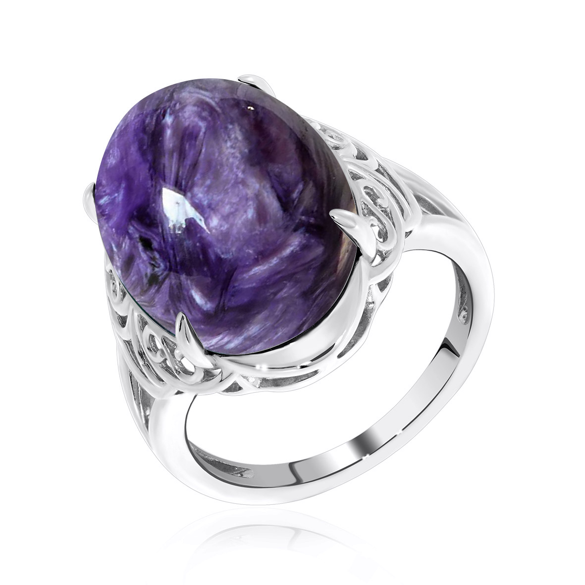 Серебряное кольцо с натуральным чароитом от KRASNOE эффектно смотрится на руке и притягивает внимание окружающих. Чароит - этот камень дарит умиротворение. Он позволяет обрести жизненный баланс, духовное спокойствие. Вместе с тем этот самоцвет благоприятно сказывается на любовной сфере жизни. Человек, обладающий украшением с чароитом, никогда не будет один. Кольцо можно не снимать на протяжении всего дня. Непритязательная классика будет гармонировать со всеми фасонами вашей одежды. Серебряные кольца удобно креативно сочетать друг с другом. В коллекцию ювелирного бренда KRASNOE входят колье-чокеры и галстуки, дорожки, пусеты, джекеты, серьги-трансформеры, а также яркая детская коллекция. Размер вставки чароит натуральный овал кабошон 13*18мм.