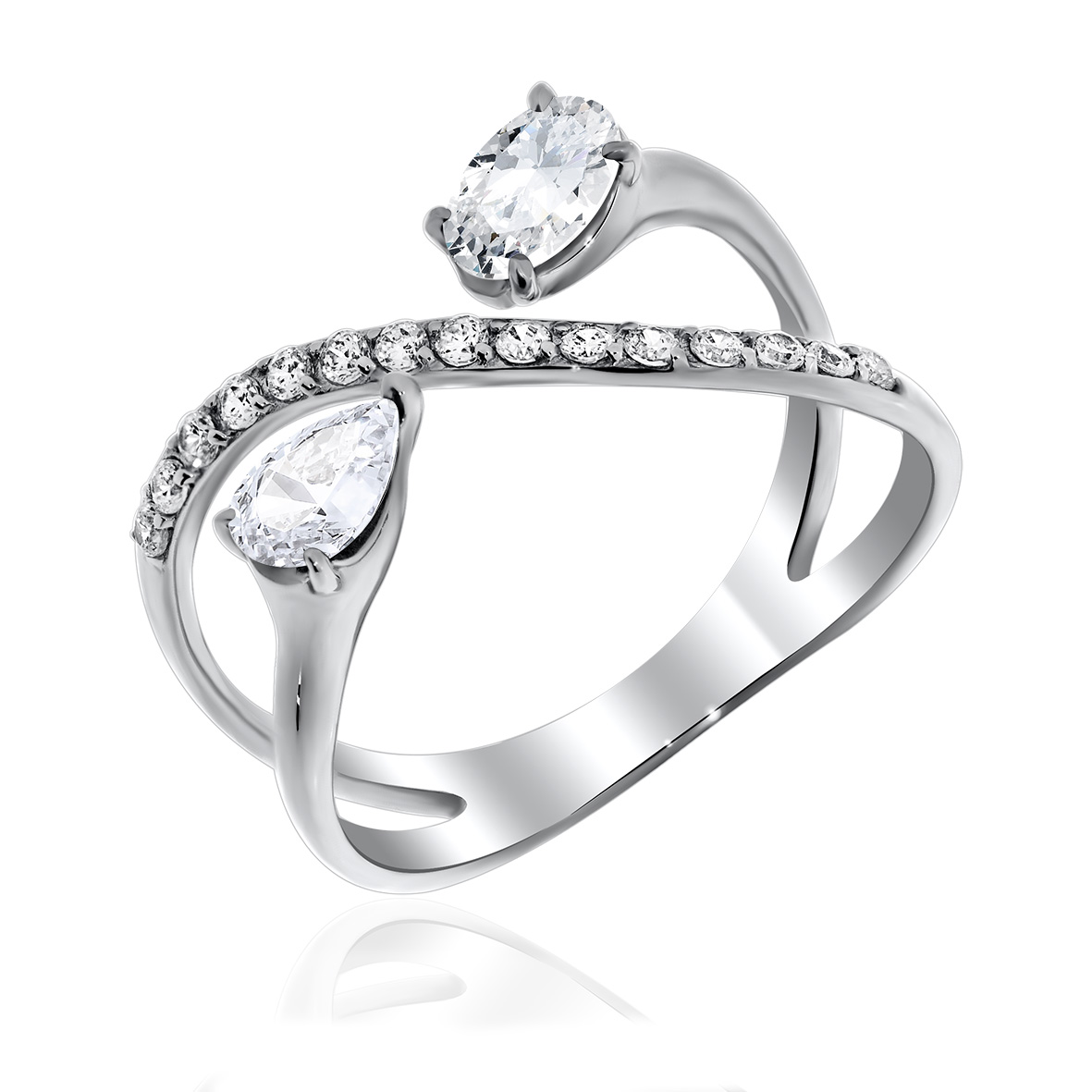 Кольцо для женщин из серебра 925 пробы с фианитами из коллекции Дуэт артикул 1340200288 от компании KRASNOE