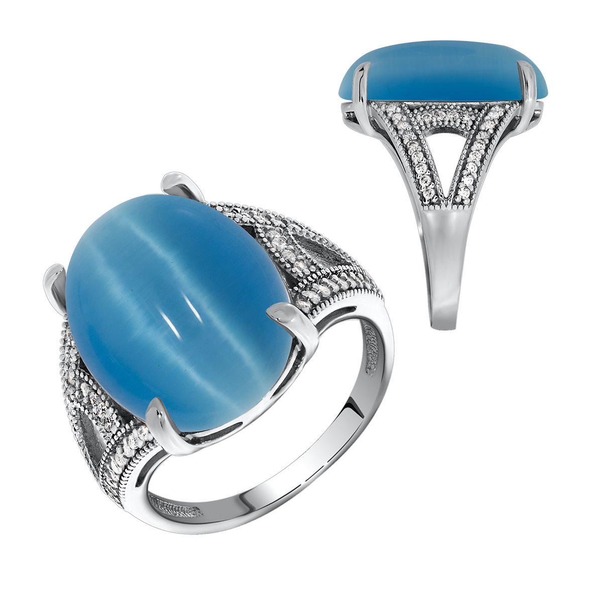 Кольцо для женщин из серебра 925 пробы с кошачим глазом,фианитами из коллекции Уральские самоцветы артикул 1340263537л-70 от компании KRASNOE
