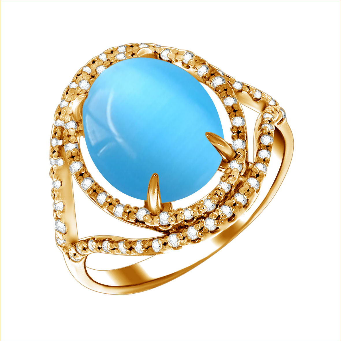 Кольцо для женщин из серебра 925 пробы с кошачим глазом,фианитами из коллекции Уральские самоцветы артикул 1320260194-5 от компании KRASNOE