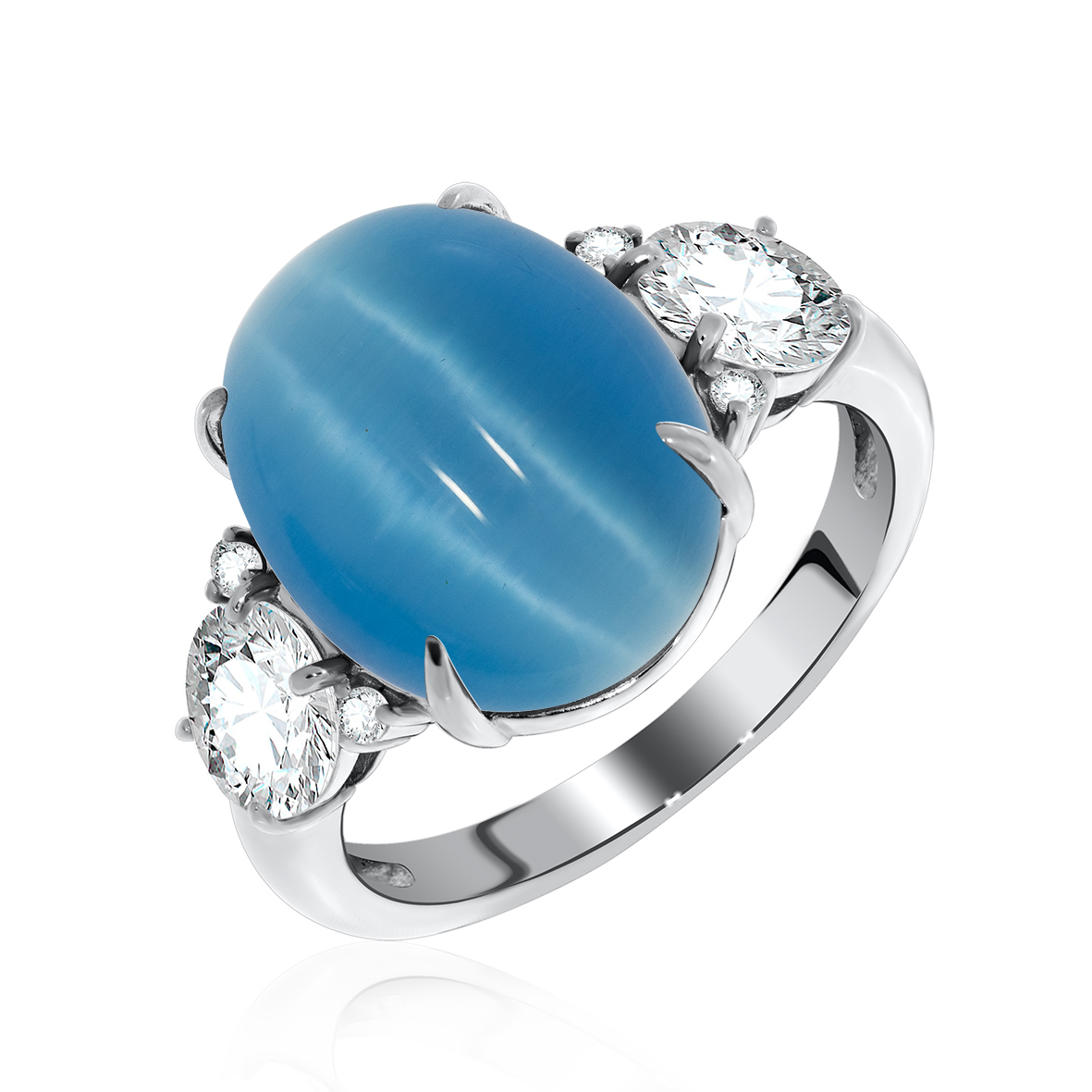 Кольцо для женщин из серебра 925 пробы с кошачий глазом,фианитами из коллекции Уральские самоцветы артикул 1340260936-80 от компании KRASNOE