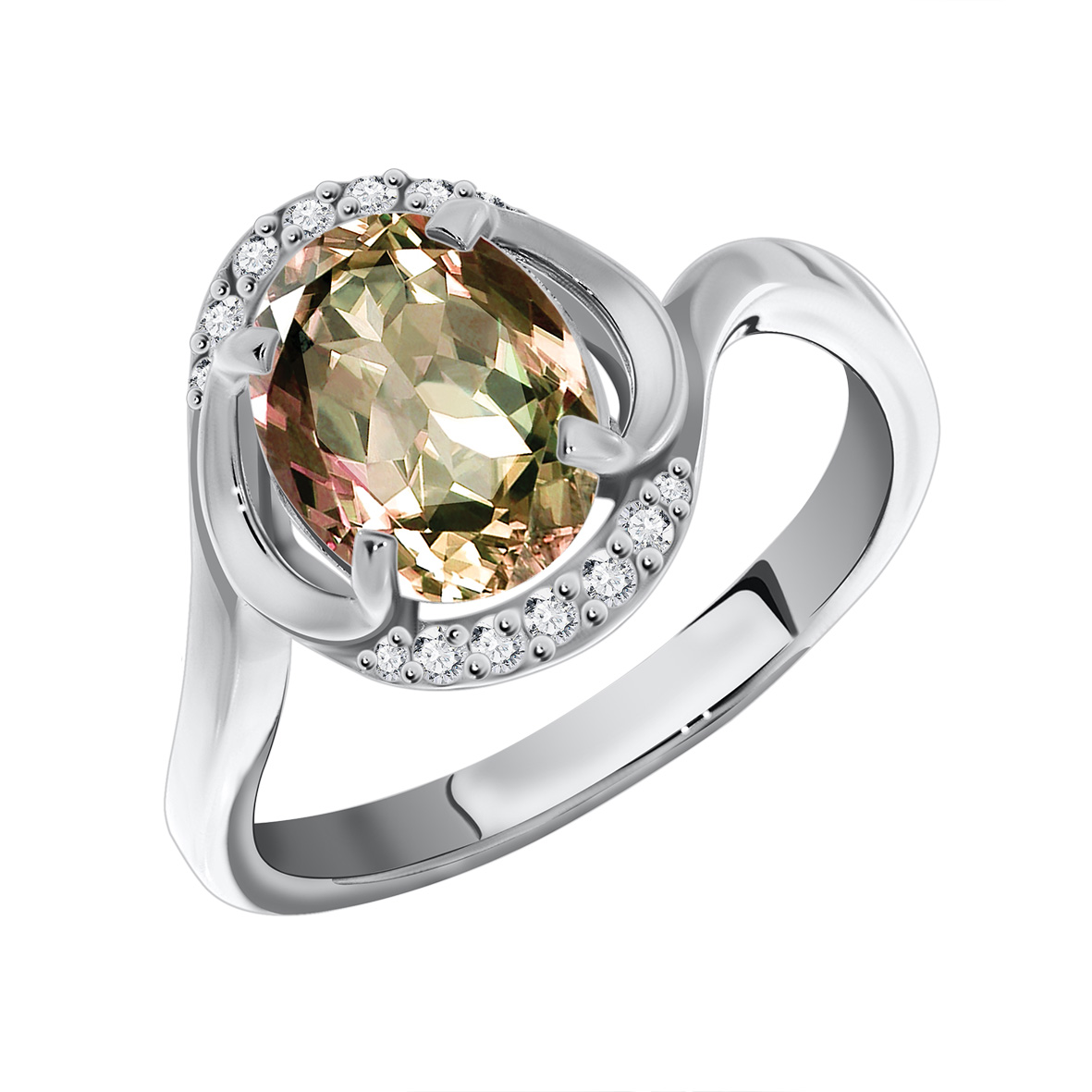 Кольцо для женщин из серебра 925 пробы с кристаллом ювелирным,фианитами из коллекции Ирида артикул 1340290138-98 от компании KRASNOE