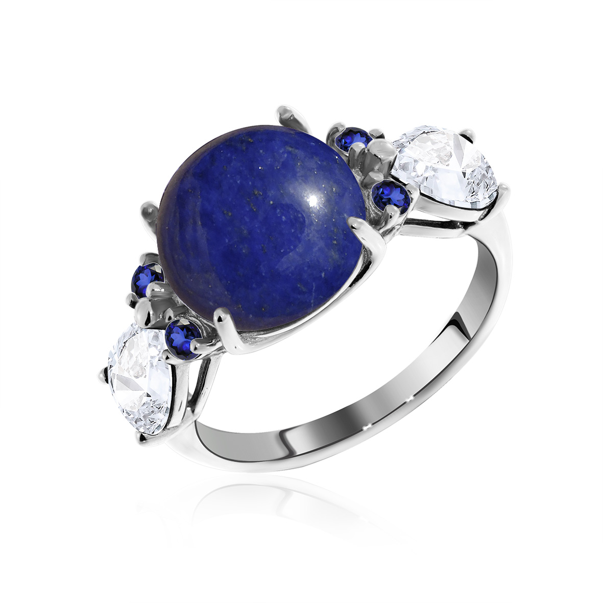 Кольцо для женщин из серебра 925 пробы с лазуритом,фианитами из коллекции Уральские самоцветы артикул 1340470935 от компании KRASNOE
