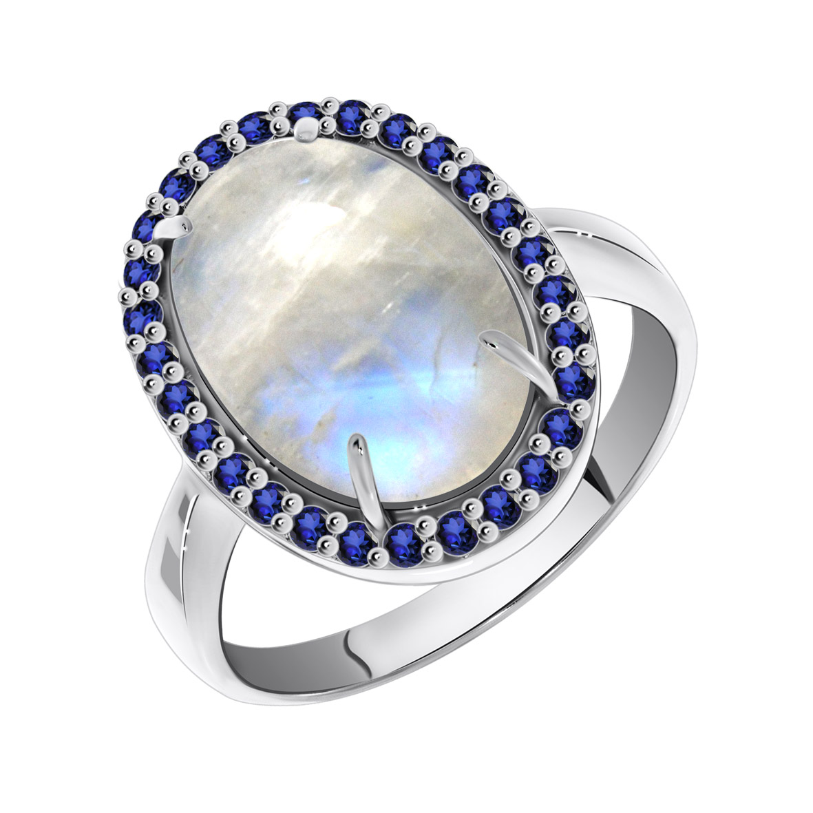 Кольцо для женщин из серебра 925 пробы с лунным камнем,ситаллами из коллекции Ирида артикул 1340930253л-80 от компании KRASNOE