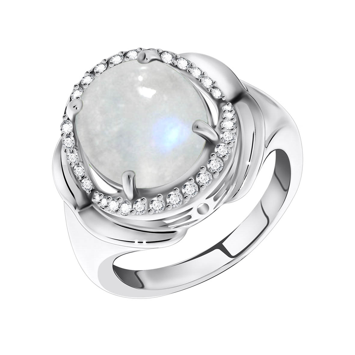 Кольцо для женщин из серебра 925 пробы с лунным камнем,фианитами из коллекции Ирида артикул 1340930140 от компании KRASNOE