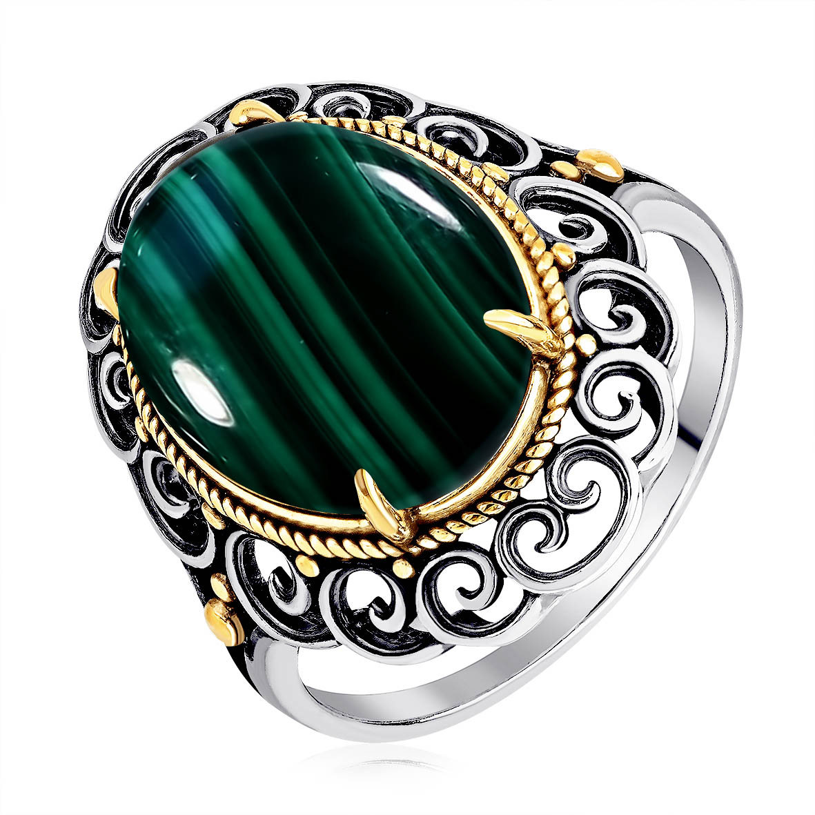 Кольцо для женщин из серебра 925 пробы с малахитом из коллекции Династия артикул 1317385090 от компании KRASNOE