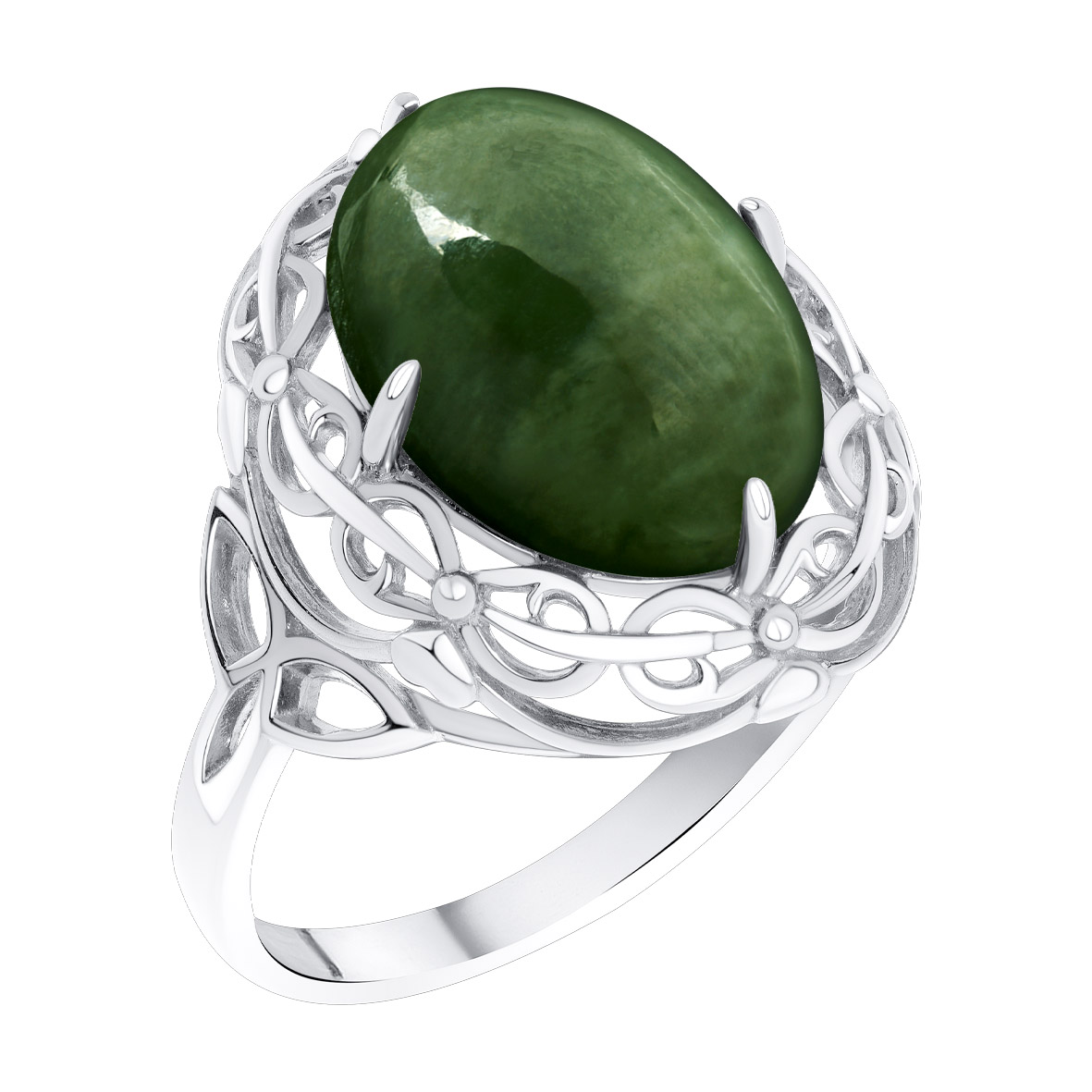 Кольцо для женщин из серебра 925 пробы с нефритом из коллекции Уральские самоцветы артикул 1340355774 от компании KRASNOE