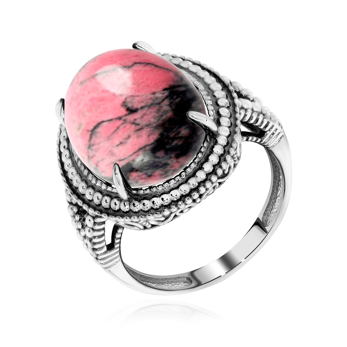 Винтажная модель кольца с натуральным родонитом из коллекции "Династия" эффектно смотрится на руке и притягивает внимание окружающих. Кольцо в минималистичном дизайне можно не снимать на протяжении всего дня. Непритязательная классика будет гармонировать со всеми фасонами вашей одежды. Серебряные кольца удобно креативно сочетать друг с другом и с фаланговыми кольцами.В коллекцию ювелирного бренда KRASNOE входят колье-чокеры и галстуки, дорожки, пусеты, джекеты, серьги-трансформеры, а также яркая детская коллекция с эмалью. Размер вставки родонит натуральный 13*18.