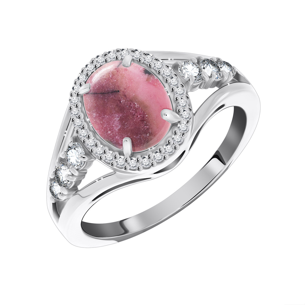 Кольцо для женщин из серебра 925 пробы с родонитом,фианитами из коллекции Ирида артикул 1340450182л от компании KRASNOE