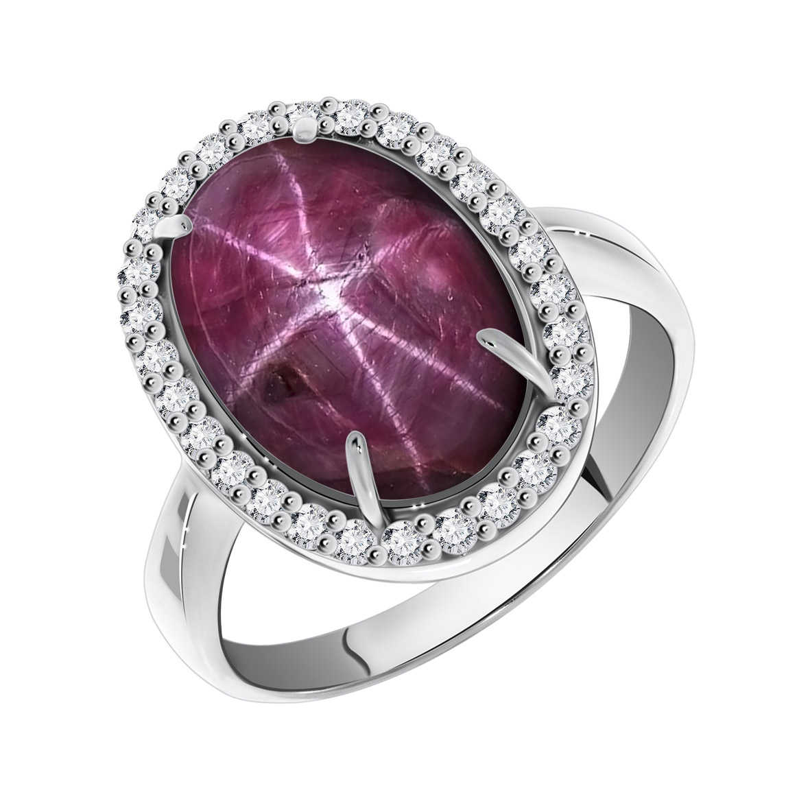 Кольцо для женщин из серебра 925 пробы с звездчатым рубином,фианитами из коллекции Ирида артикул 1340940253л-3 от компании KRASNOE