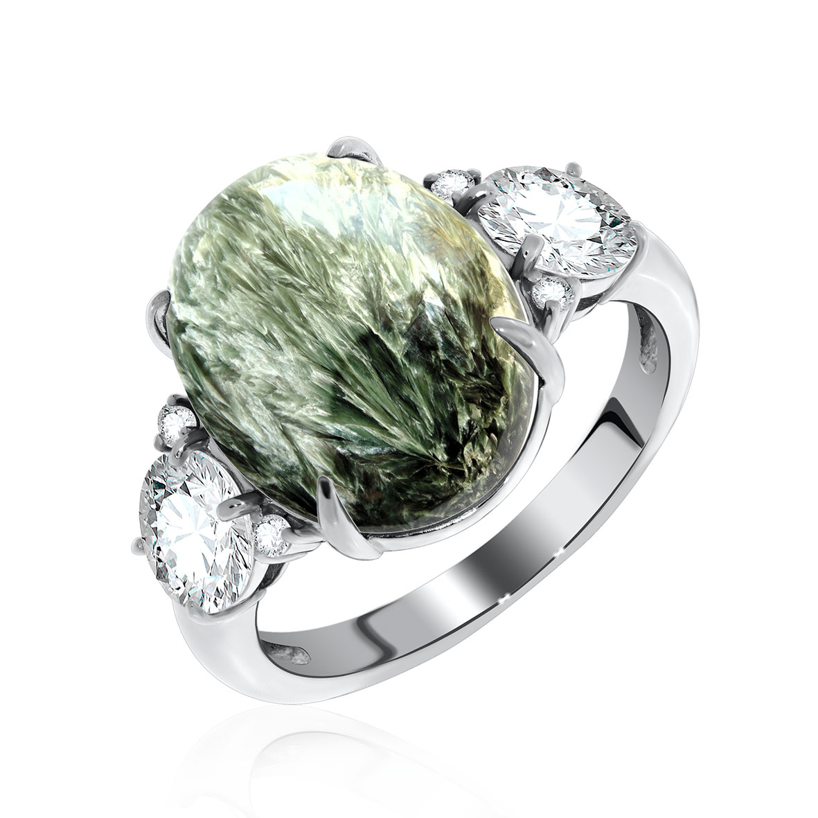 Кольцо для женщин из серебра 925 пробы с серафинитом,фианитами из коллекции Уральские самоцветы артикул 1340920936 от компании KRASNOE