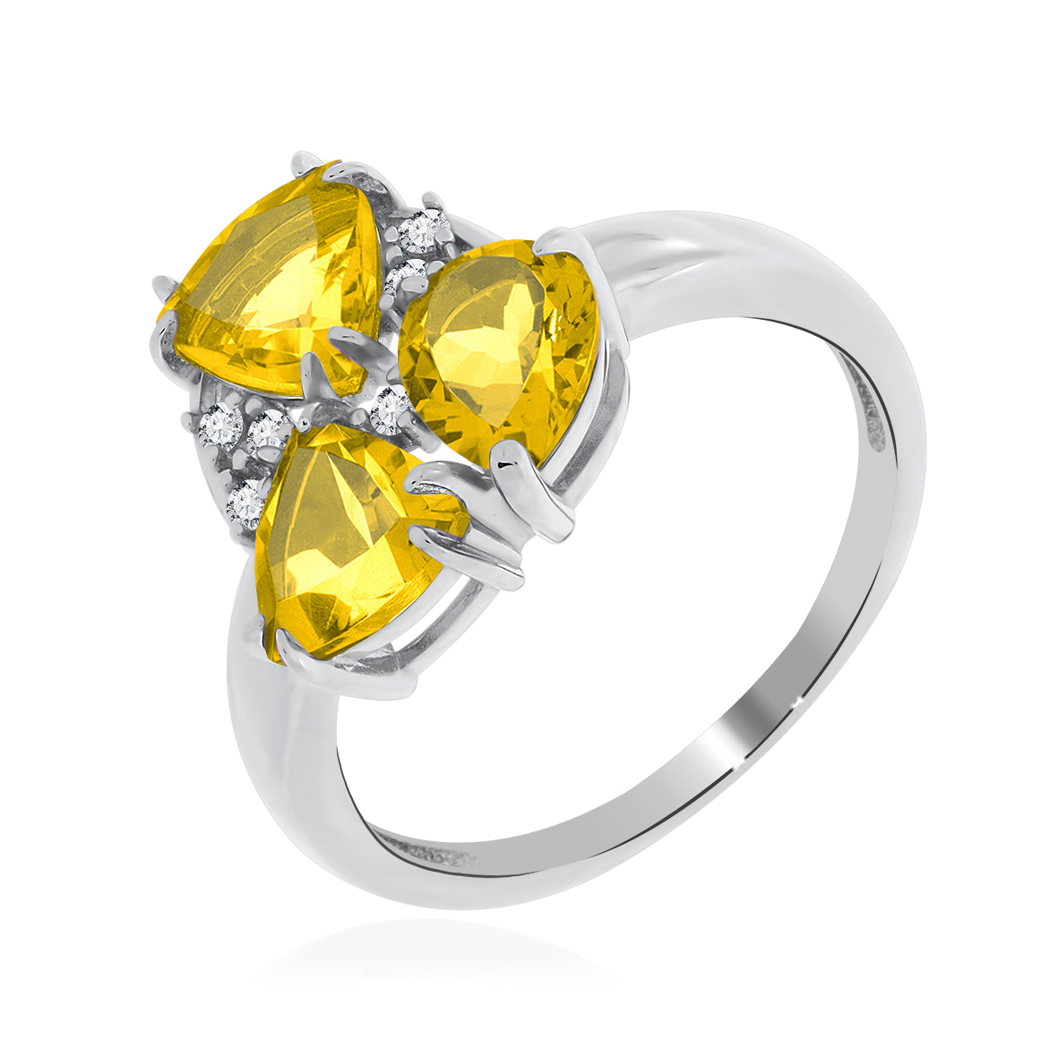 Серебряное кольцо с ярким и сочным цитрином и фианитами, Данная модель кольца эффектно смотрится на руке и притягивает внимание окружающих. Кольцо в не обычном дизайне можно не снимать на протяжении всего дня. Непритязательная классика будет гармонировать со всеми фасонами вашей одежды. Серебряные кольца удобно креативно сочетать друг с другом и с фаланговыми кольцами. В коллекцию ювелирного бренда KRASNOE входят колье-чокеры и галстуки, дорожки, пусеты, джекеты, серьги-трансформеры, а также яркая детская коллекция с эмалью. Размер камня: цитрин натуральный 6*8 мм и 7*7 мм.