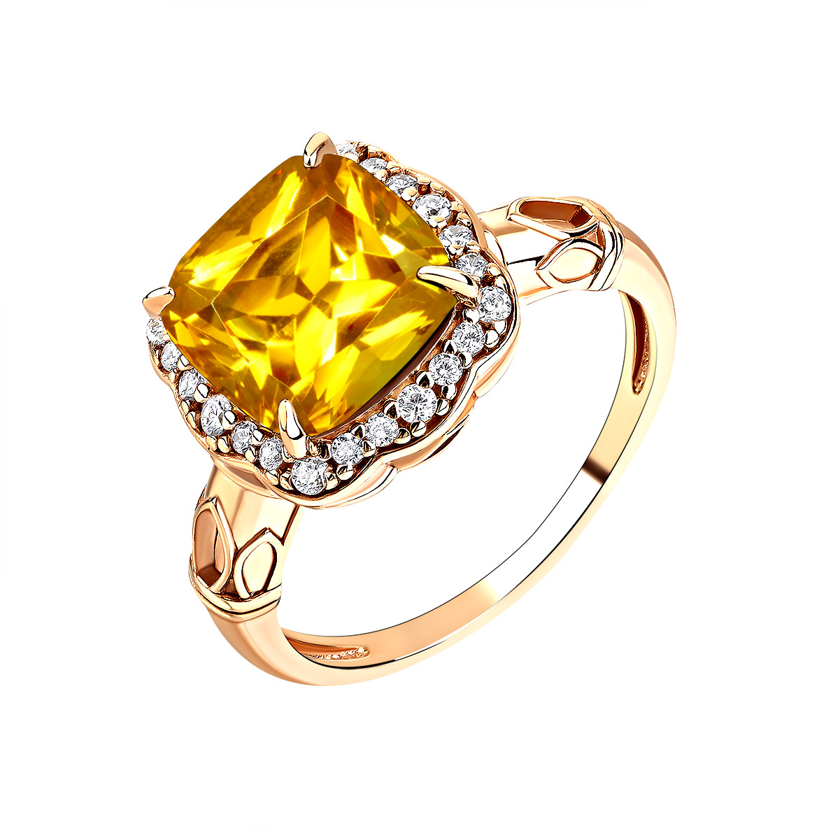 Кольцо для женщин из серебра 925 пробы с цитрином,фианитами из коллекции Городская роскошь артикул 1320111964л от компании KRASNOE