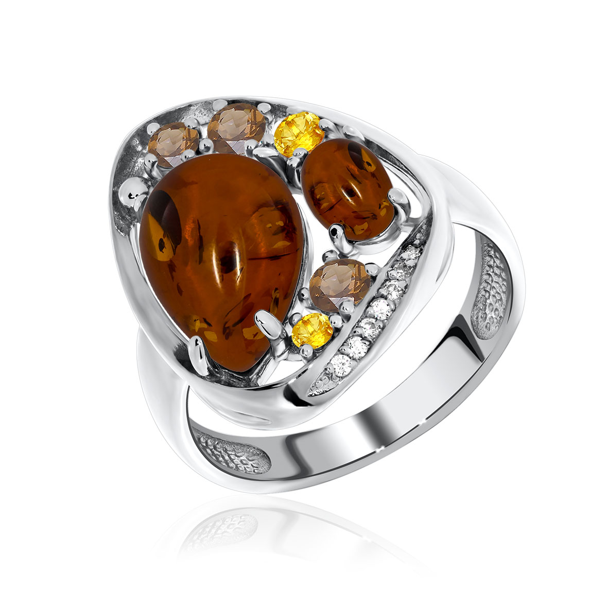 Кольцо для женщин из серебра 925 пробы с янтарём,фианитами из коллекции Сладкая история артикул 1340861172-42 от компании KRASNOE