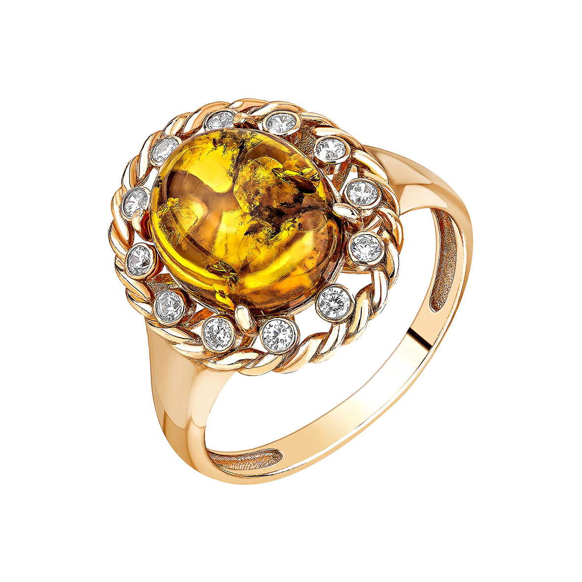 Кольцо для женщин из серебра 925 пробы с янтарём,фианитами из коллекции Уральские самоцветы артикул 1320480973л от компании KRASNOE