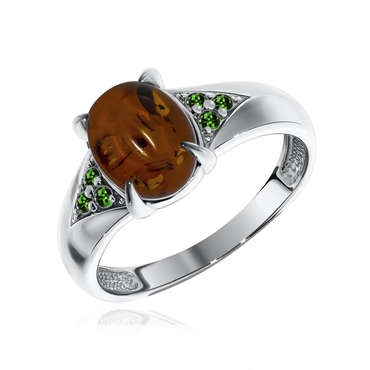 Кольцо для женщин из серебра 925 пробы с янтарем,шпинелями из коллекции Созвездие артикул 1340860372-57-1 от компании KRASNOE