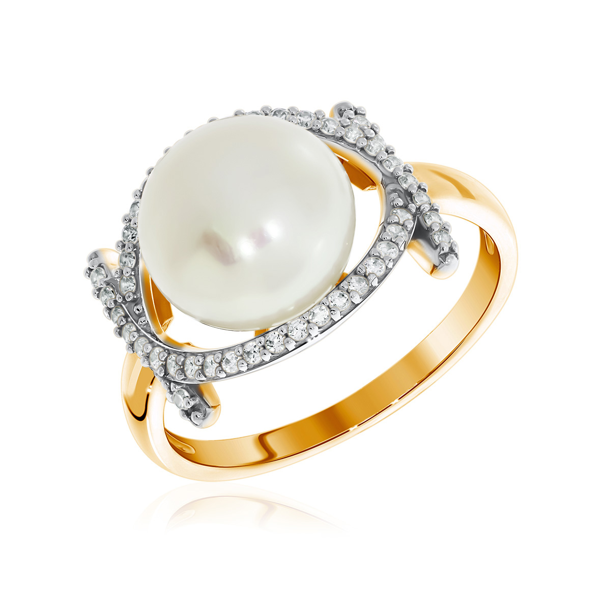 Кольцо для женщин из серебра 925 пробы с жемчугом,фианитами из коллекции Афродита артикул 1329050801л-2 от компании KRASNOE