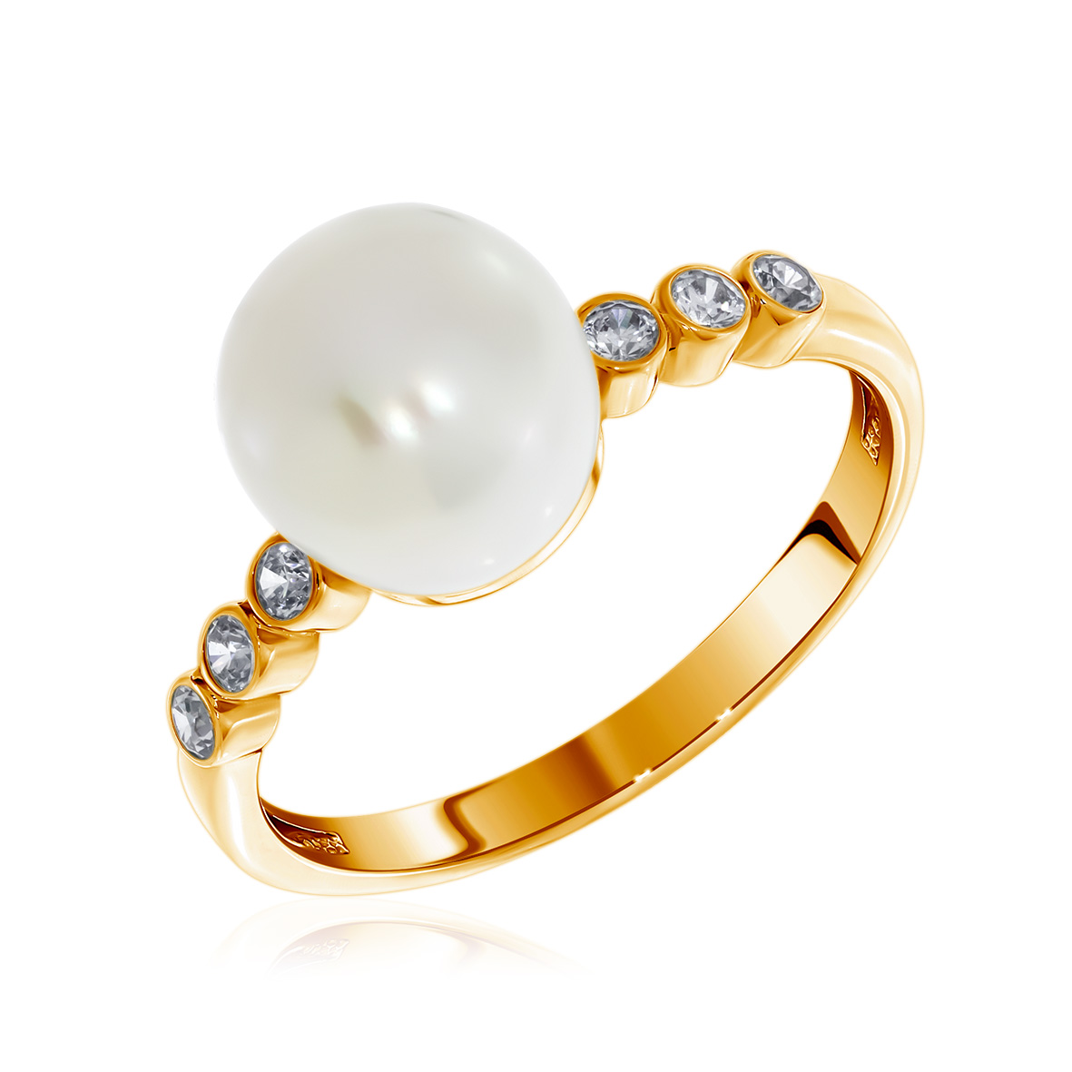 Кольцо для женщин из серебра 925 пробы с жемчугом,фианитами из коллекции Афродита артикул 1320050800л от компании KRASNOE