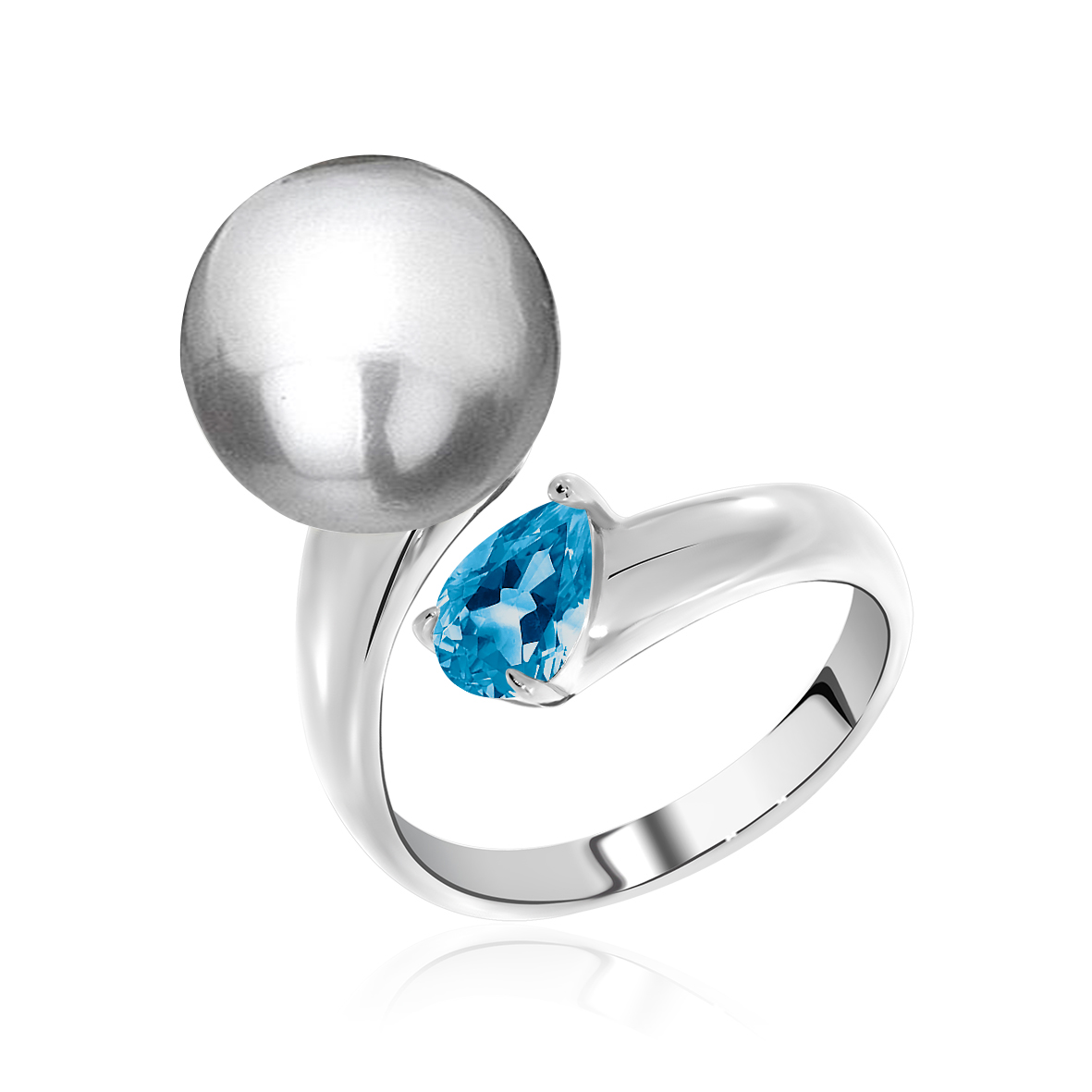 Кольцо для женщин из серебра 925 пробы с жемчугом,фианитом из коллекции Дуэт артикул 1340241396-1-21 от компании KRASNOE