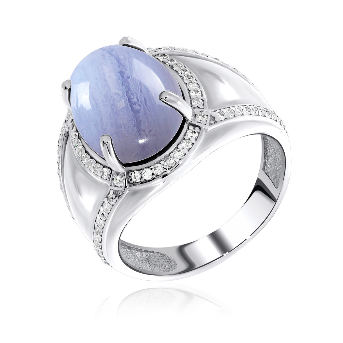Кольцо для женщин из серебра 925 пробы с агатом,фианитами из коллекции Уральские самоцветы артикул 1340390989л-84 от компании KRASNOE
