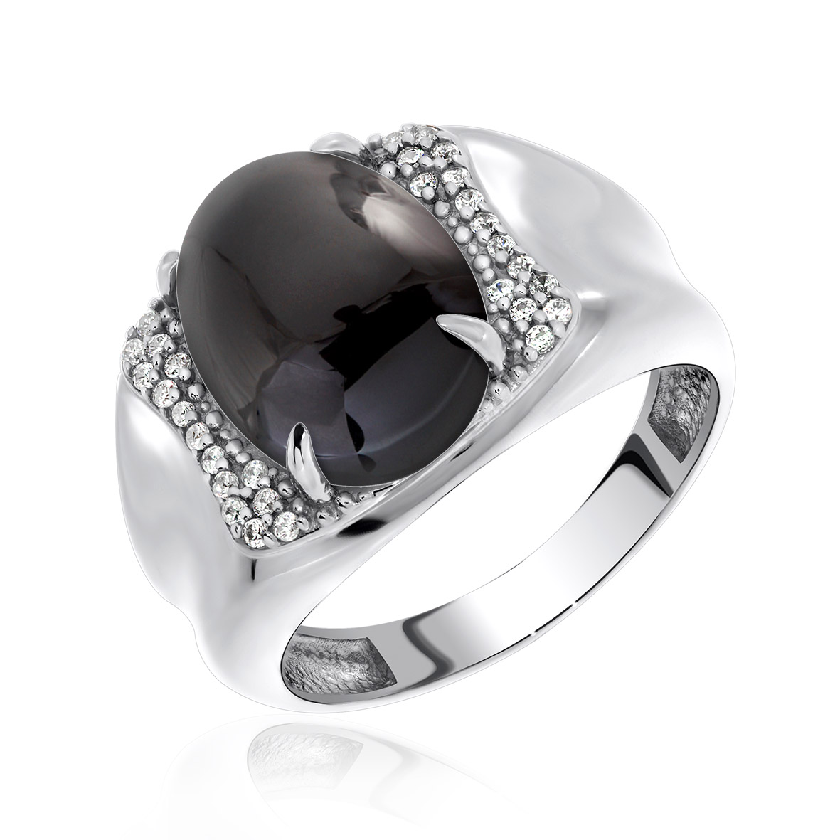 Кольцо для женщин из серебра 925 пробы с агатом,фианитами из коллекции Уральские самоцветы артикул 1340390965л-20 от компании KRASNOE