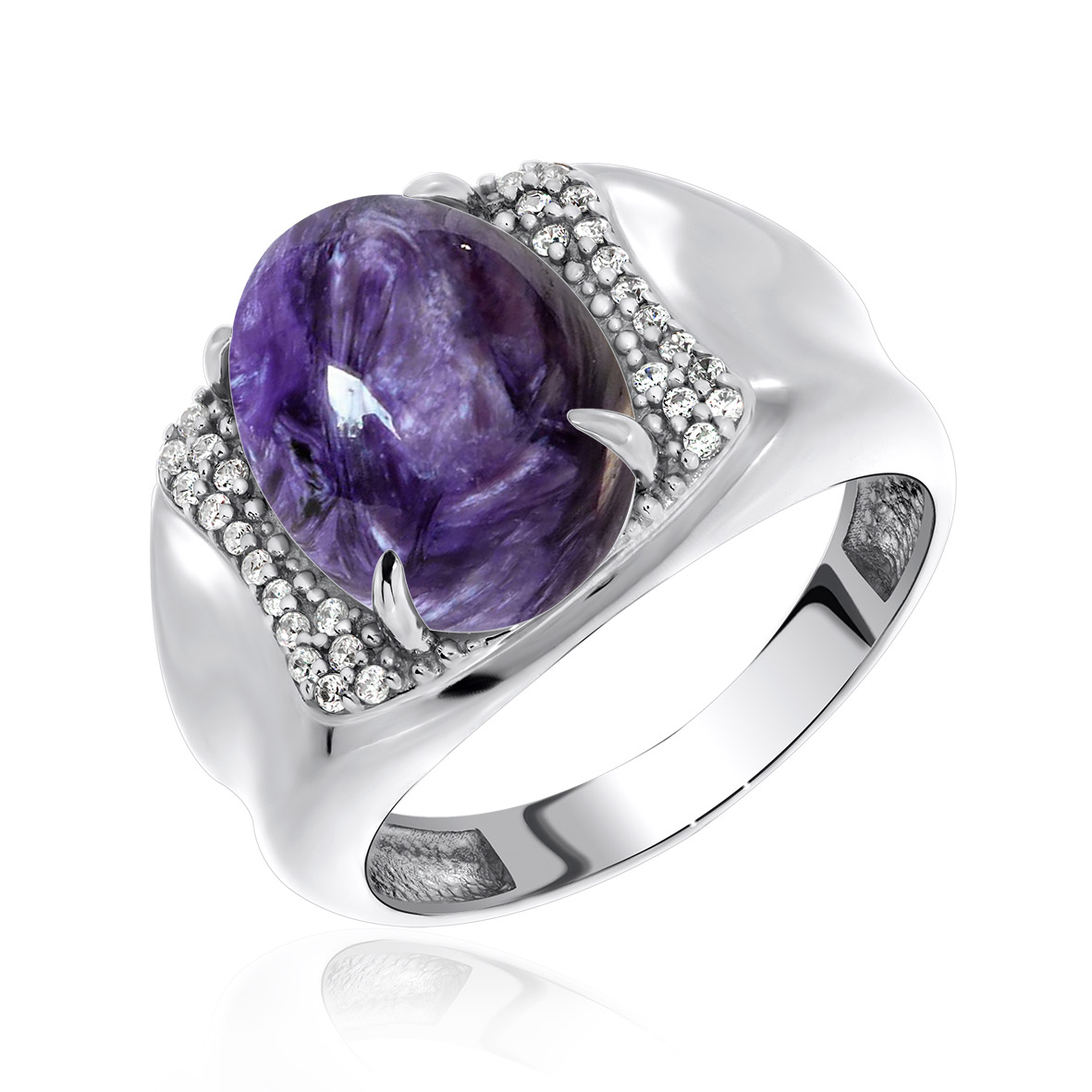 Кольцо для женщин из серебра 925 пробы с чароитом,фианитами из коллекции Уральские самоцветы артикул 1340460965л от компании KRASNOE