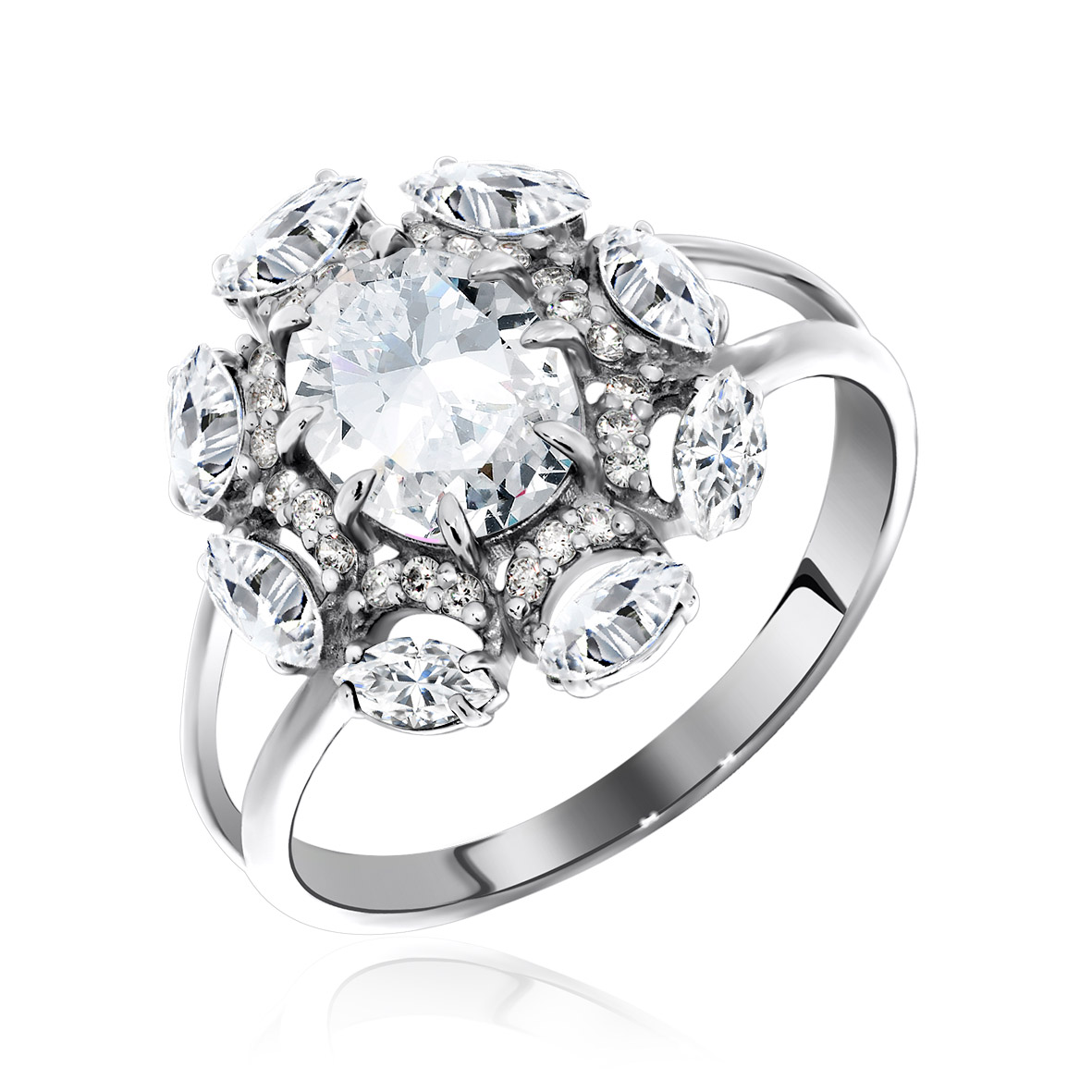 Кольцо из серебра 925 пробы, покрытие родий, с фианитами в кармезиновой закрепке.