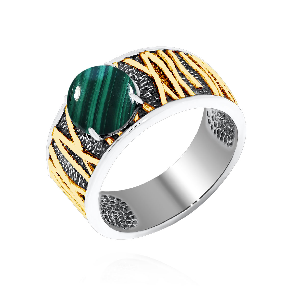 Кольцо для женщин из серебра 925 пробы с малахитом из коллекции Игра фактур артикул 1317381752 от компании KRASNOE
