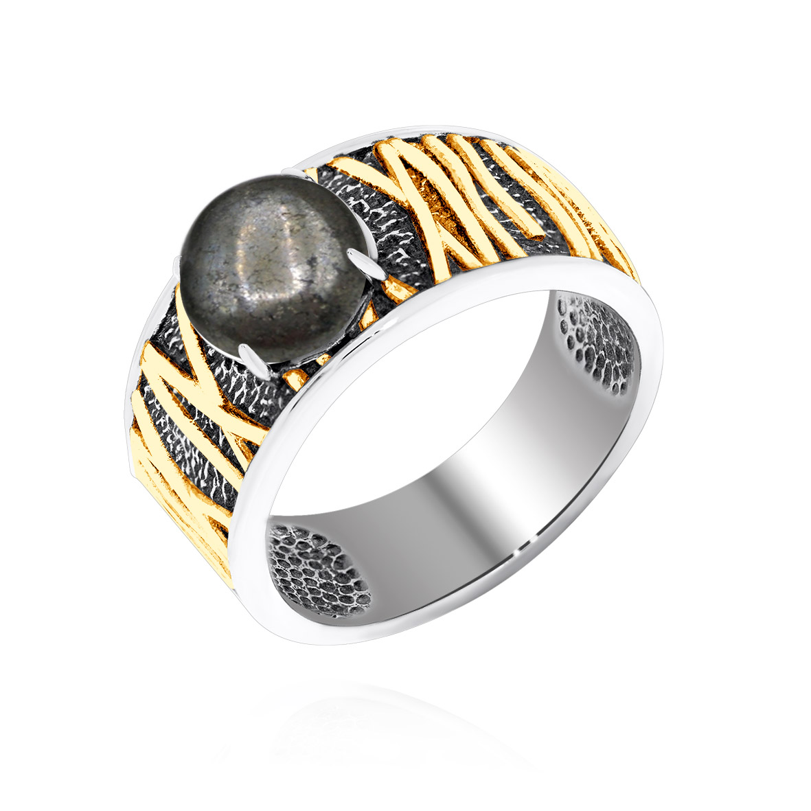 Кольцо для женщин из серебра 925 пробы с пиритом из коллекции Игра фактур артикул 1317П01752 от компании KRASNOE
